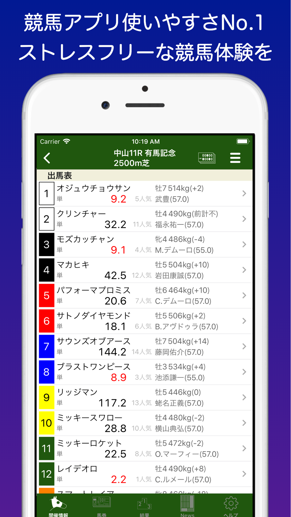 MyKeiba offers recent racing programs, results, and relevant news. Basic but enough features are for free and it should be helpful to determine your betting strategy to win!
