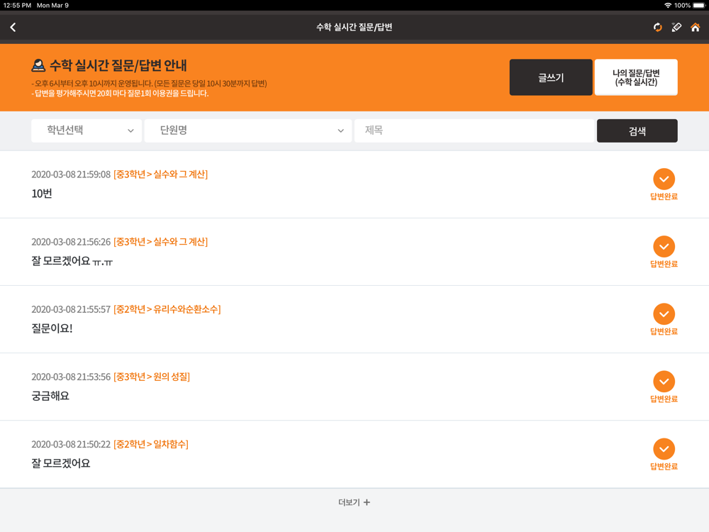 - 수학 실시간 질문답변 : 수학문제를 실시간으로 질문하고 답변 확인