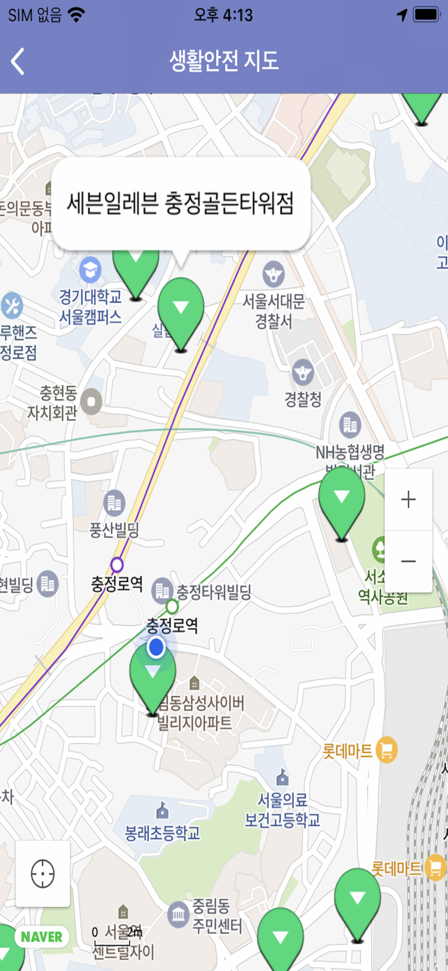- 내 주변의 생활안전시설 위치 검색이 가능합니다.