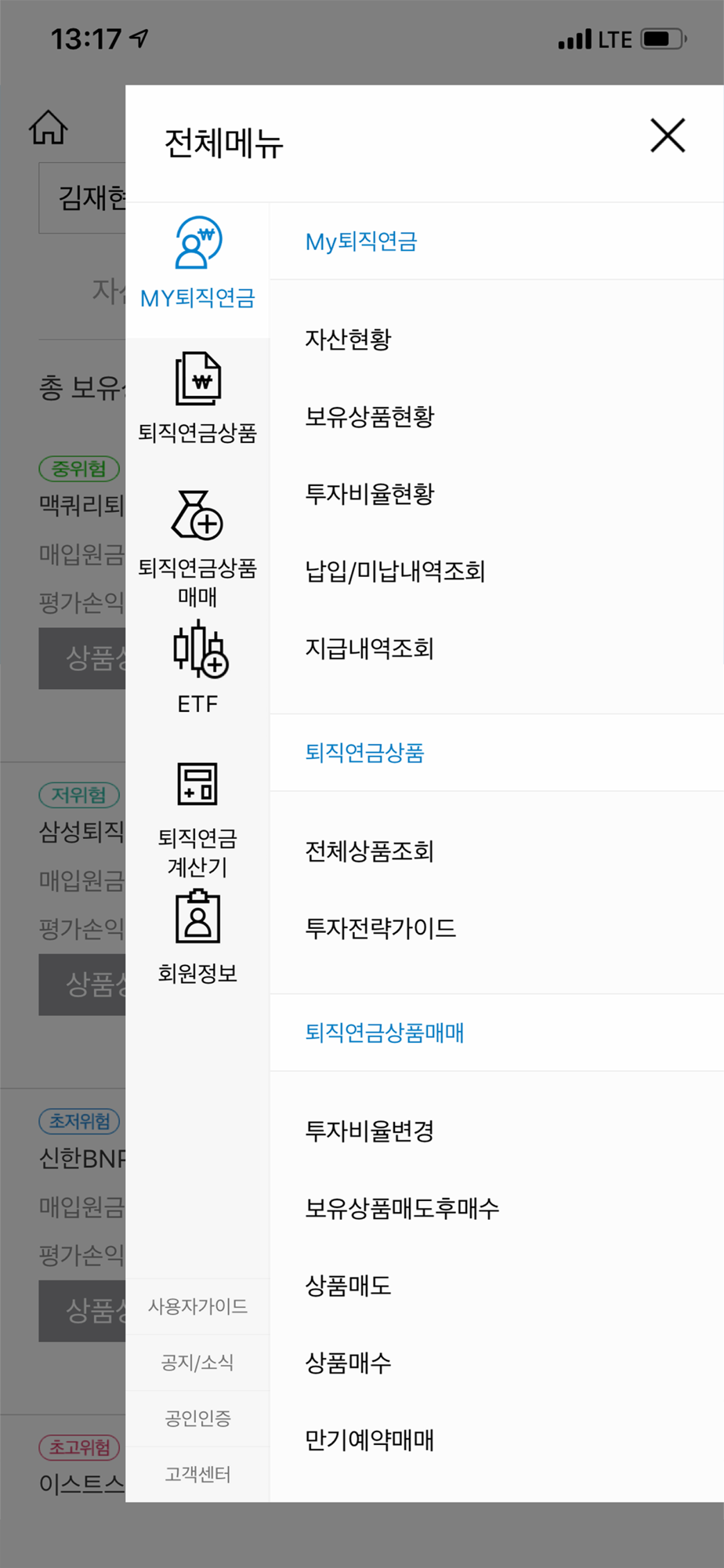 대신증권 퇴직연금전용앱은 DC/IRP 가입고객님께서 이용하실 수 있습니다.