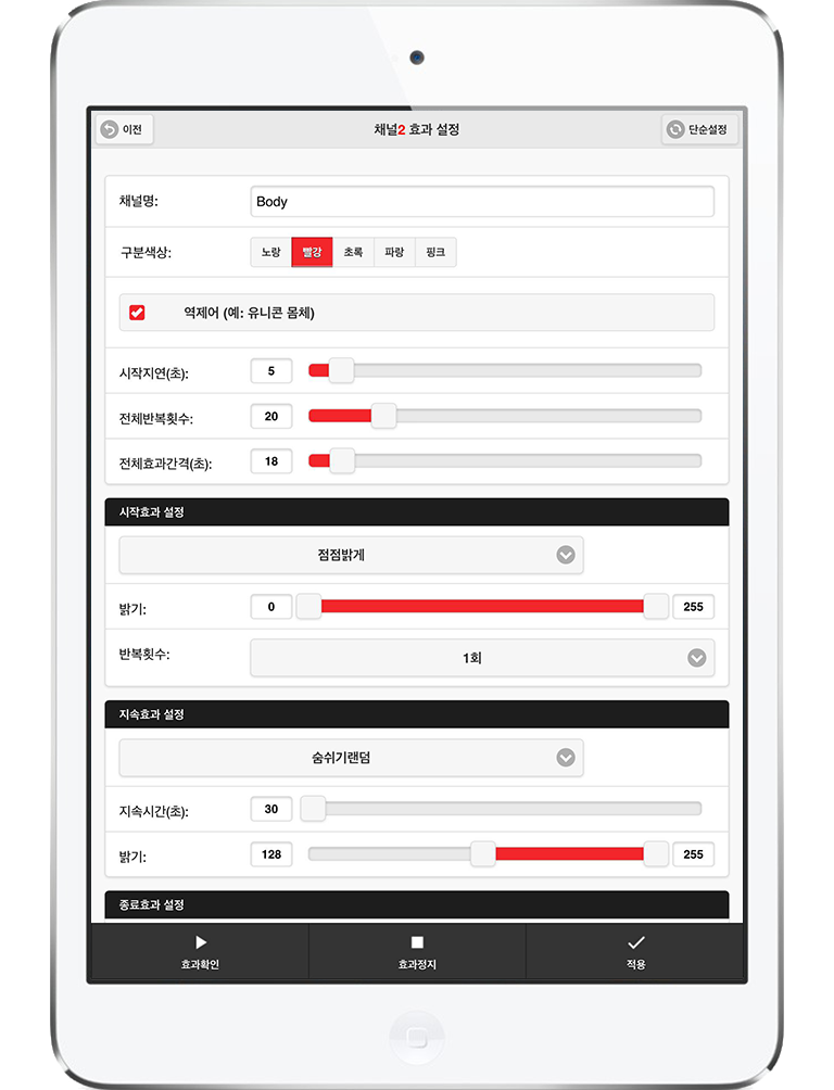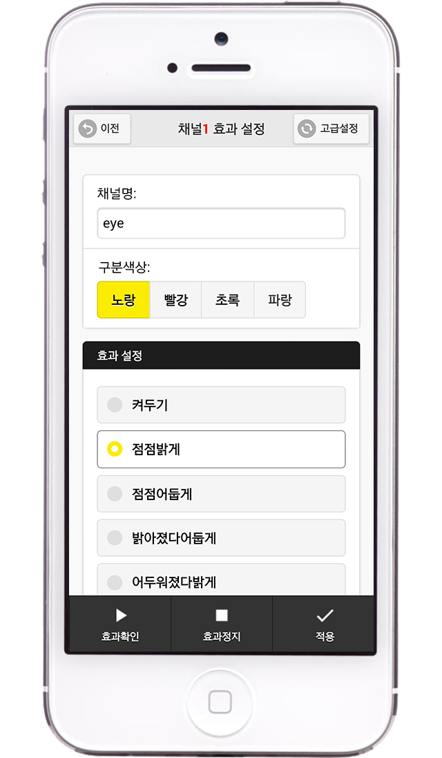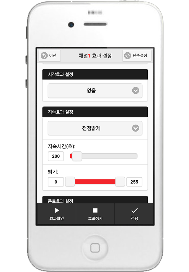 제어를 위한 스마트 기기는 블루투스 BLE 4.0이상 지원을 하여야 합니다.
