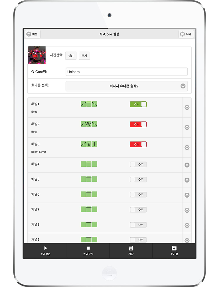 또한 하나의 G-Core에 16개 채널이 지원되어 일반 LED의 경우 16개 건프라에 장착할 수 있고,