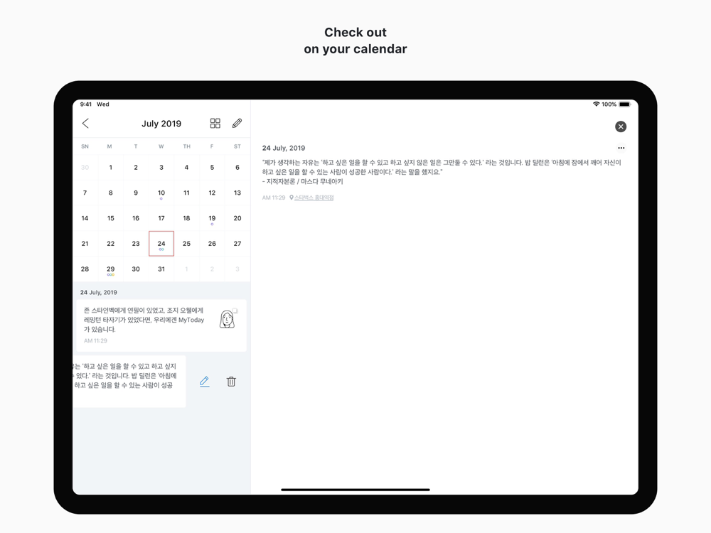 • You can move the month with the left and right swipe gestures on the calendar screen, and you can see the previous year or the following year through the year view icon at the top.