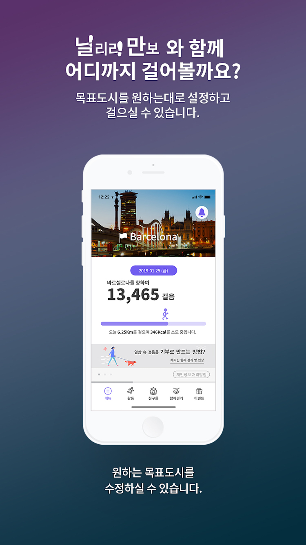 * 일상 속 걸음을 모아 목표도시 여행권 응모