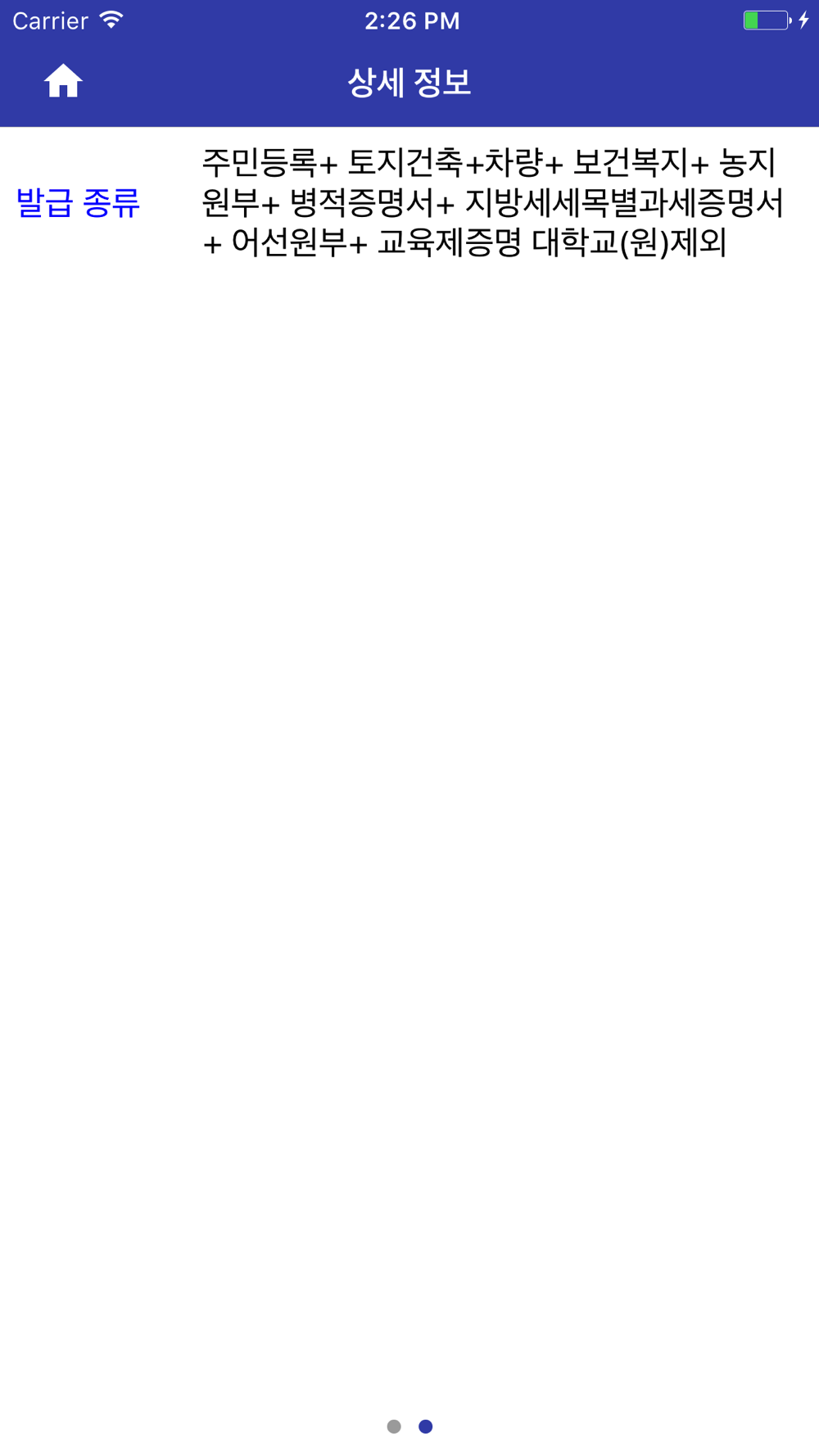 주민등록등본, 주민등록초본, 개별공시지가확인서, 토지이용계획확인서, 토지(임야)대장등본, 대지권등록부, 건축물대장, 건축물대장총괄표제부, 집합건축물대장(표제부), 집합건축물대장(전유부분), 건설기계등록원부(갑), 건설기계등록원부(을), 자동차등록원부(갑), 자동차등록원부(을), 수급자증명서, 장애인증명서, 한부모가족증명서, 농지원부, 병적증명서(군복무필자), 병적증명서(면제자), 병적증명서(국민역), 지방세세목별과세증명서(취득세), 지방세세목별과세증명서(등록세), 지방세세목별과세증명서(면허세), 지방세세목별과세증명서(주민세), 지방세세목별과세증명서(재산세), 지방세세목별과세증명서(자동차세), 지방세세목별과세증명서(농업소득세), 지방세세목별과세증명서(도축세), 지방세세목별과세증명서(레저세), 지방세세목별과세증명서(당배소비세), 지방세세목별과세증명서(종합토지세), 지방세세목별과세증명서(주행세), 지방세세목별과세증명서(지방소비세), 지방세세목별과세증명서(등록면허세), 지방세세목별과세증명서(사업소세), 지방세세목별과세증명서(지역개발세), 지방세세목별과세증명서(지역자원시설세), 지방세세목별과세증명서(지방소득세), 등기부등본, 제적등본, 제적초본, 가족관계증명서, 기본증명서, 혼인관계증명서, 입양관계증명서, 가족관계증명서(폐쇄), 기본증명서(폐쇄), 혼인관계증명서(폐쇄), 입양관계증명서(폐쇄), 졸업증명서(국문), 졸업증명서(영문), 졸업예정증명서, 제적증명서, 제적(정원외관리)증명서, 성적증명서, 학교생활기록부(초), 학교생활기록부(중), 학교생활기록부(고), 교육비납입증명서, 검정고시합격증명서(국문), 검정고시합격증명서(영문), 검정고시성적증명서(국문), 검정고시성적증명서(영문), 검정고시과목합격증명서 등