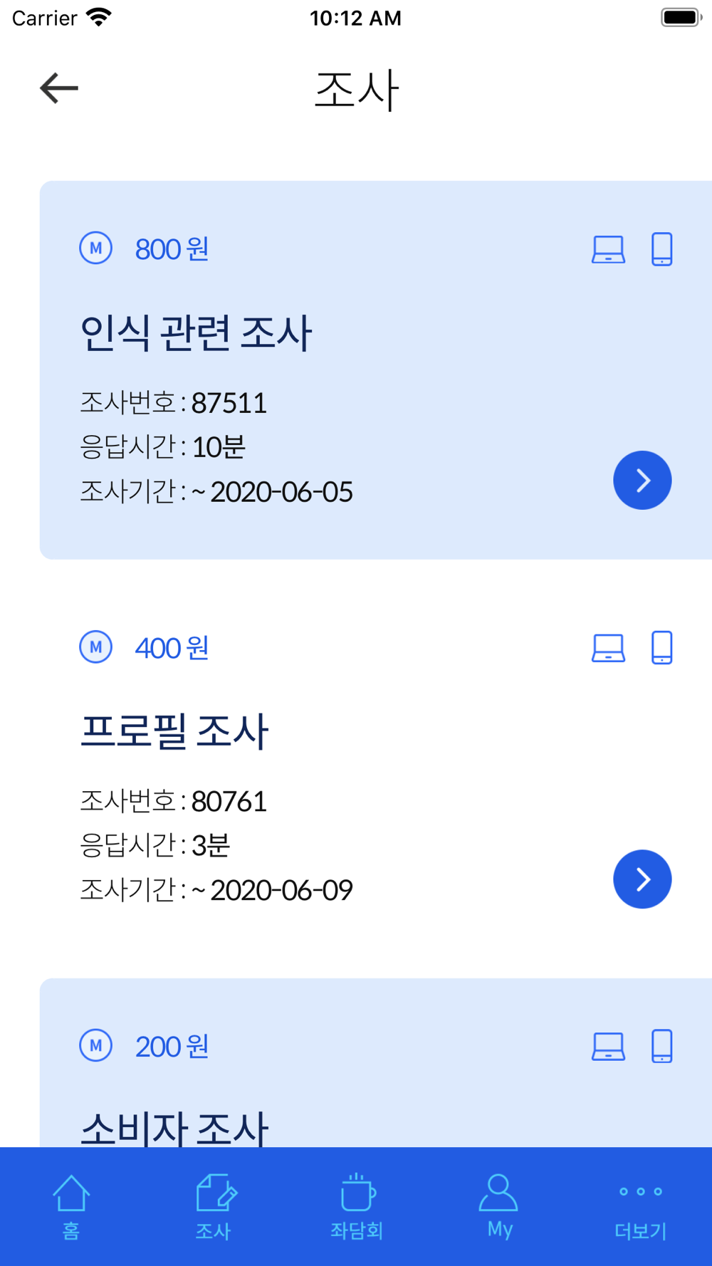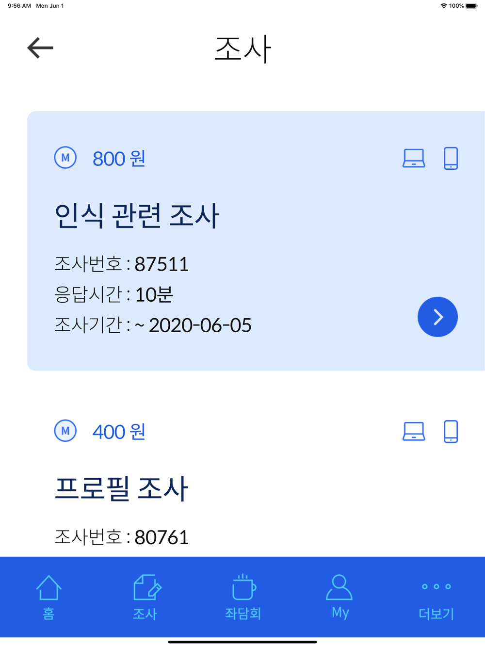 조사에 참여할 때 마다 쌓이는 적립금!