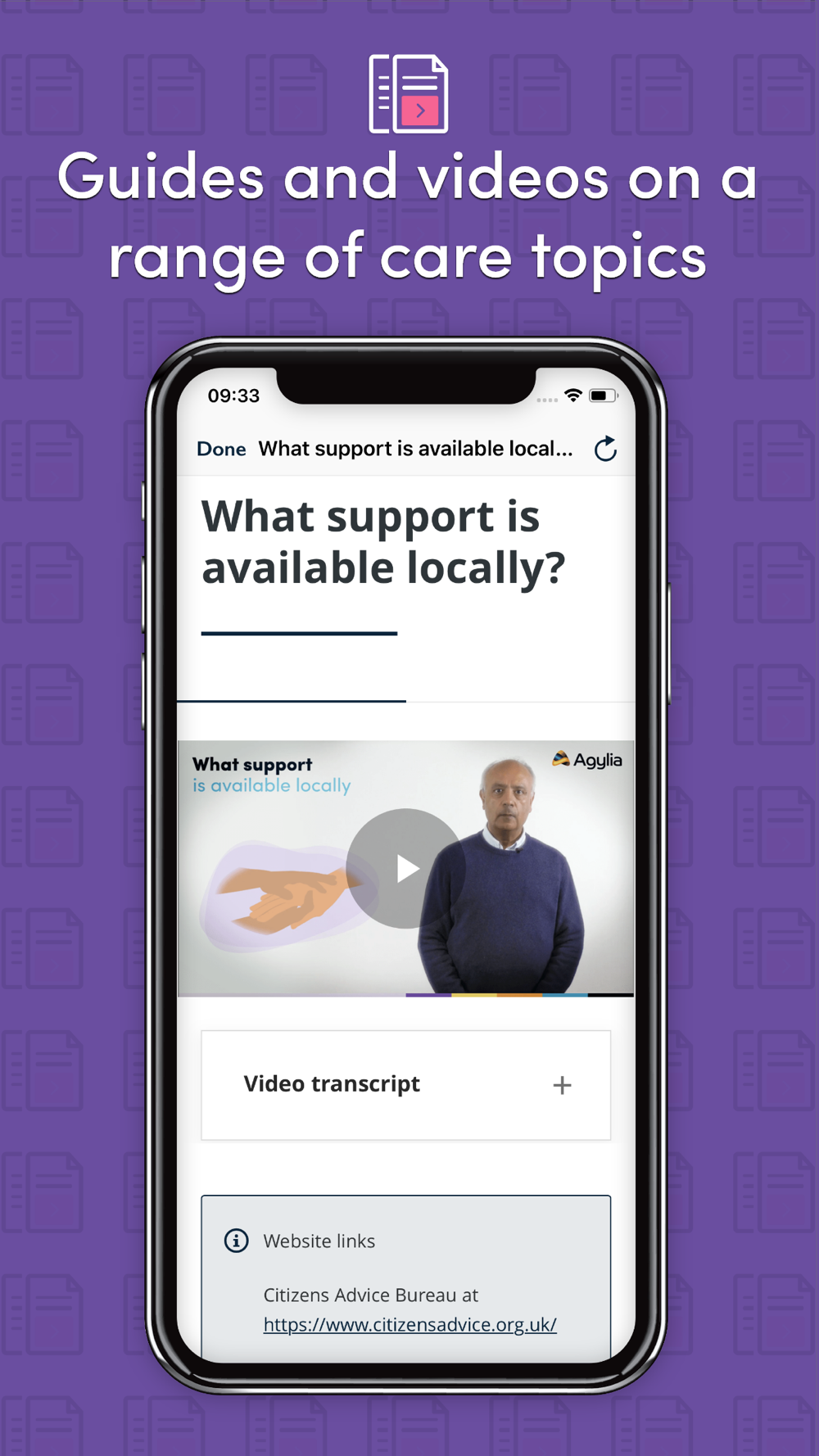 Agylia Care provides you with easy access to a range of guides, videos and support information across care-related topics, including Dementia, Diabetes, Mental Health, Health and Wellbeing, Financial Support for Carers and much more.