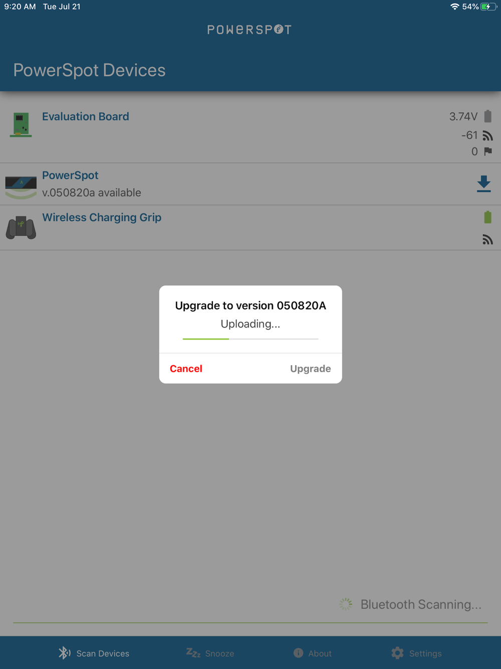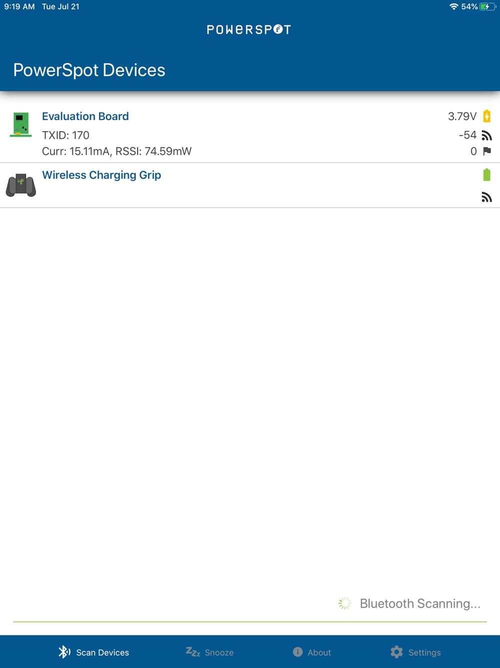 The PowerSpot app is your hub for monitoring the wireless charging status of your Wireless Charging Grip and other Powercast-enabled devices. Simply place your enabled device in front of a PowerSpot RF wireless power transmitter and monitor its status using this app.