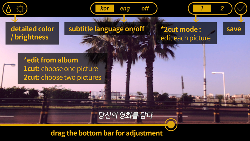 □ 7 filters derived from movie genre - romance, drama, musical, action, thriller, SF, fantasy