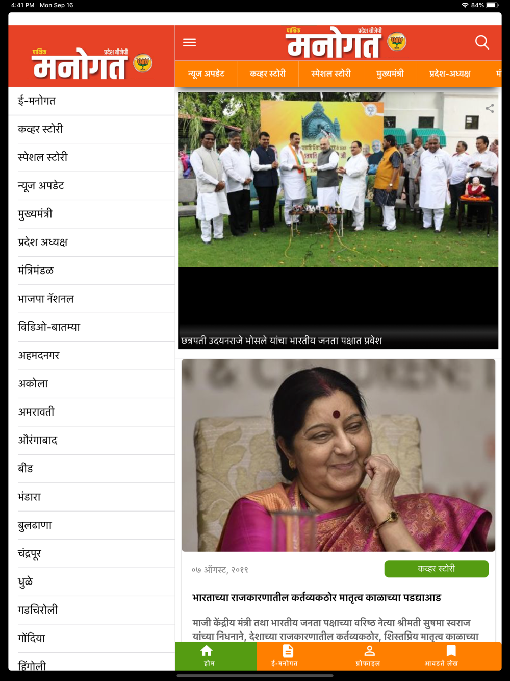 Manogat, the official fortnightly magazine of Bharatiya Janata Party, Maharashtra Pradesh.