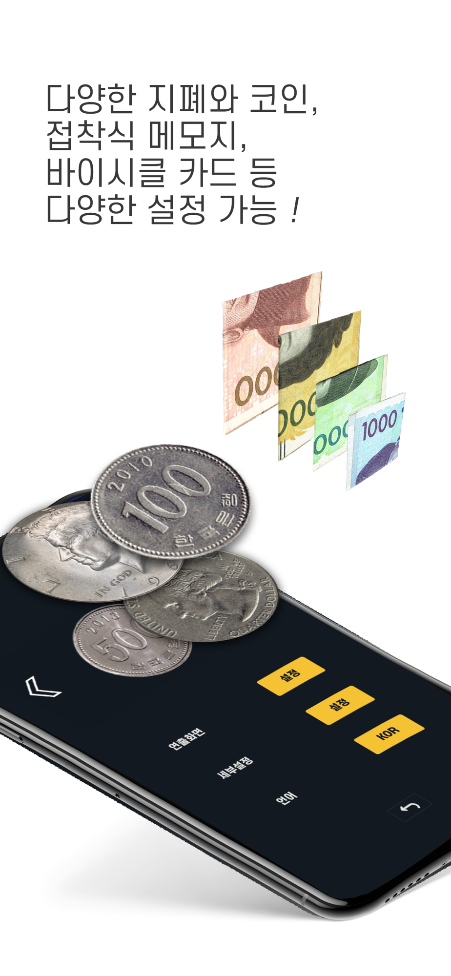 #우와! 의 기본 기능과 이미지들은 물론 더 많은 동전, 지폐와 기능까지!