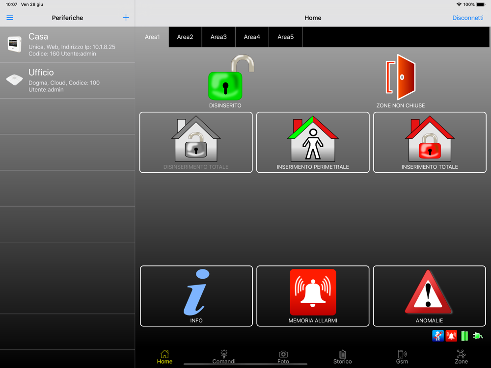 -Visualizzare lo stato, inserire e disinserire le singole aree dell’impianto;