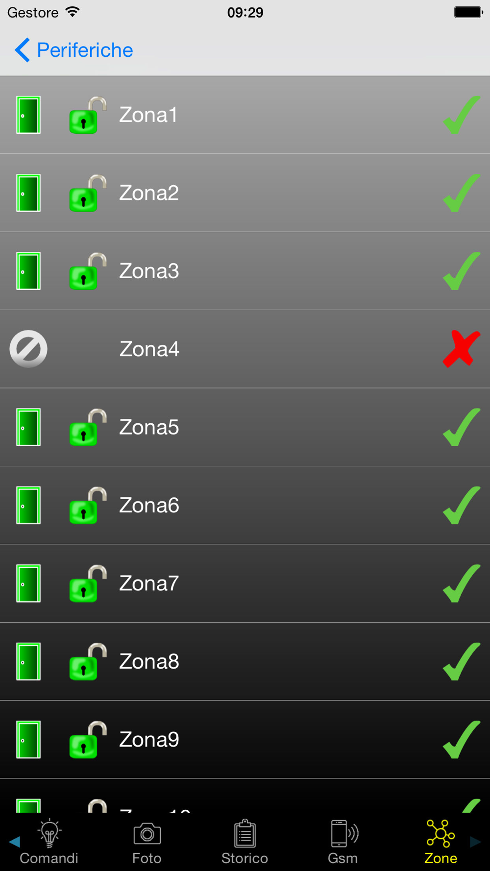 -Visualizzare lo stato delle zone del sistema e eventualmente abilitarle/disabilitarle;