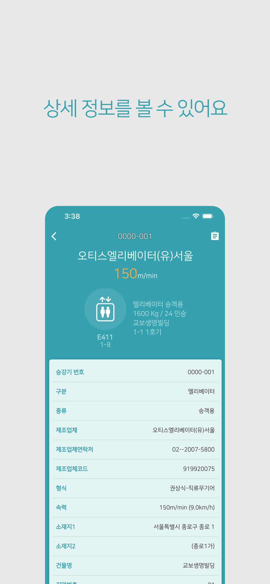 승강기 고유번호를 통해 정보를 검색해 기본적인 정보들을 보기 쉽게 정리했습니다.
