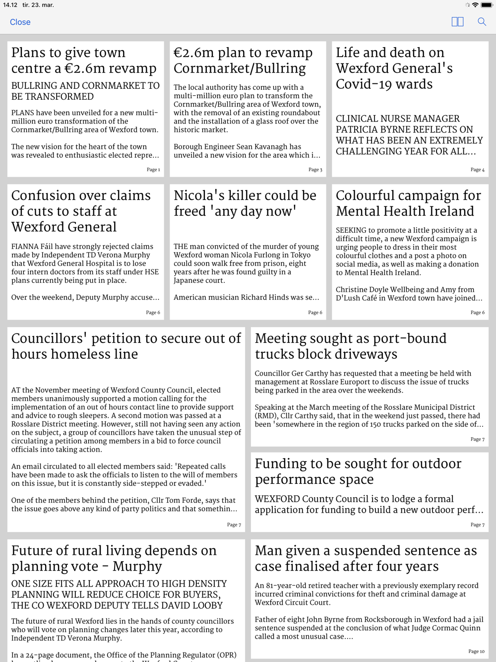 Then look no further than the Local Irish Newspaper app that gives you access to the Wexford People ePaper, The Kerryman Tralee Edition ePaper, The Kerryman Killarney & South Kerry Edition ePaper, The Kerryman North & West Kerry ePaper, Enniscorthy Guardian ePaper, New Ross Standard ePaper, The Corkman ePaper, The Sligo Champion ePaper, Gorey Guardian ePaper, Wicklow People ePaper, Wicklow People Arklow Edition ePaper, Wicklow People West Wicklow Edition ePaper, Bray People ePaper, Dundalk Argus ePaper, Drogheda Independent ePaper