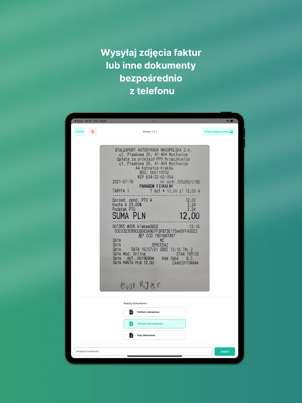 - wysyłka zdjęć faktur i dokumentów bezpośrednio z telefonu