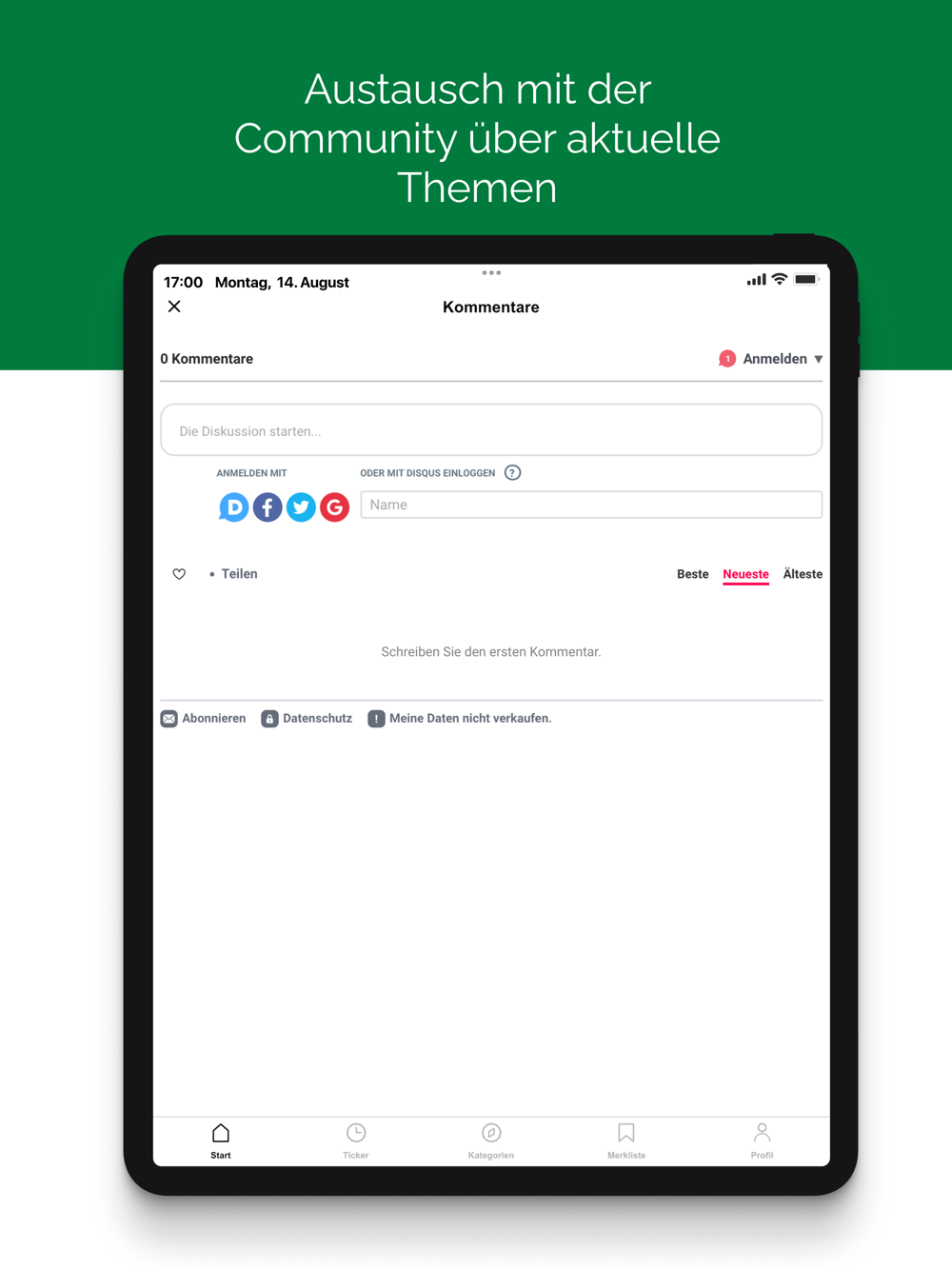 Über die Kommentarfunktion kannst Du Dich mit anderen Lesern zu aktuellen Themen