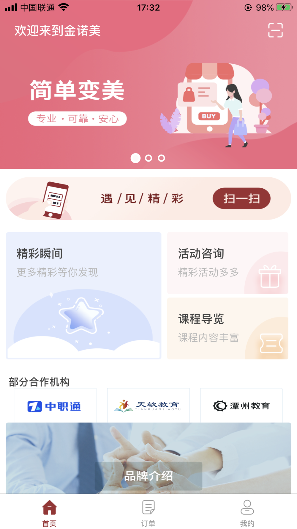 本平台集合数百家生活服务、培训机构资源,用户可以在本平台进行各种生活服务、学历提升、兴趣爱好探索等业务的在线申请、签约及绑卡支付。金诺美全流程为用户护航,让用户安心享受高品质服务!