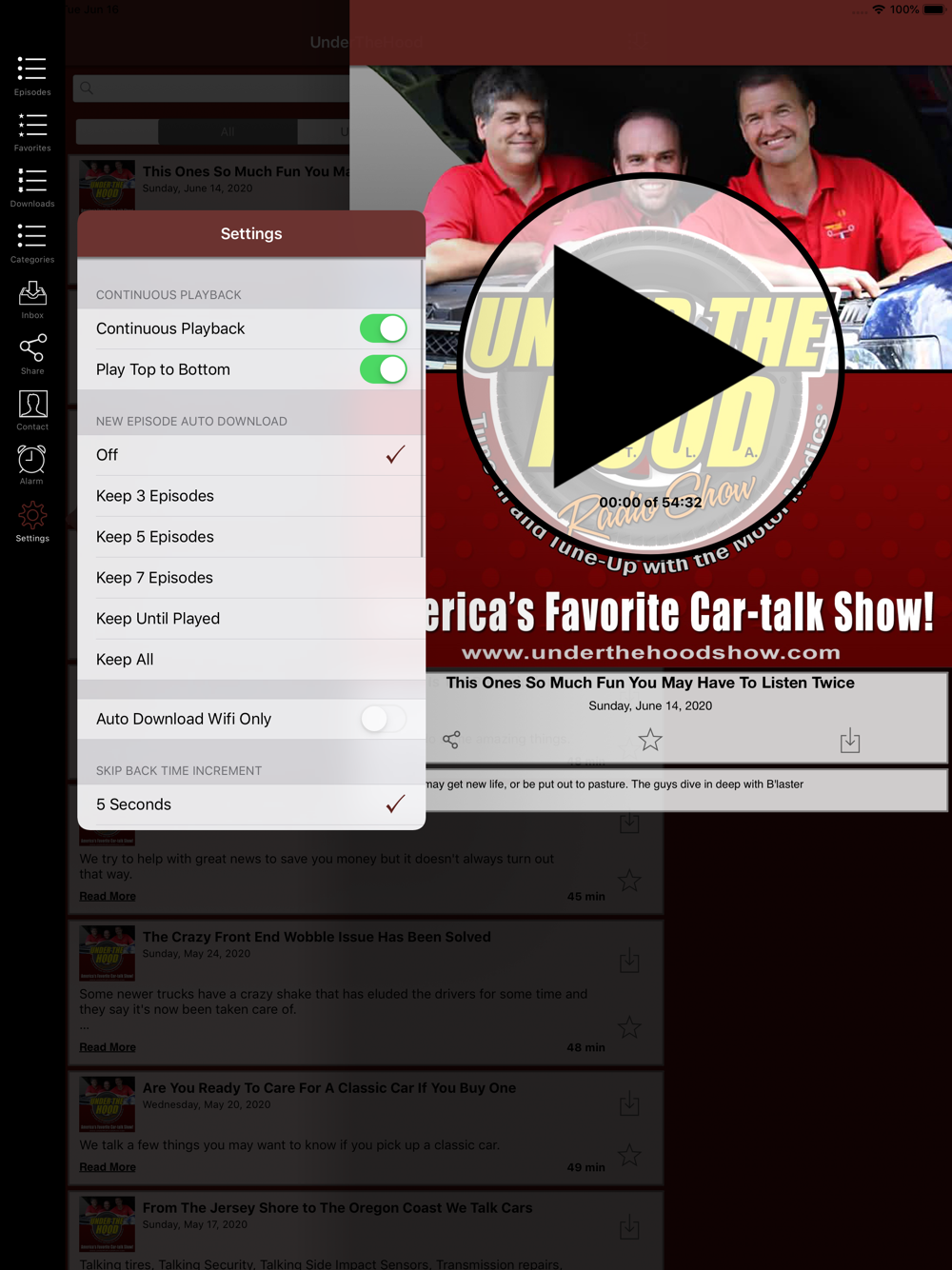 With this app you are always connected to the latest episodes and the show. Quickly star episodes and save them to a list so you can easily enjoy them over and over! This app has a Car mode too! Rotate your phone to display larger playback controls. It is the best and most convenient way to access Under The Hood.