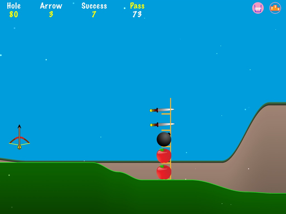 Bombs are also mixed, so you should avoid them and hit the apple.