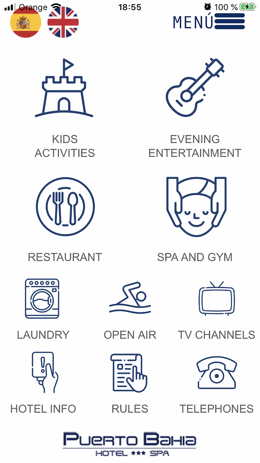 Aplicación del Hotel Puerto bahía & Spa. Consulte la información referente a los servicios y programación en su teléfono móvil.