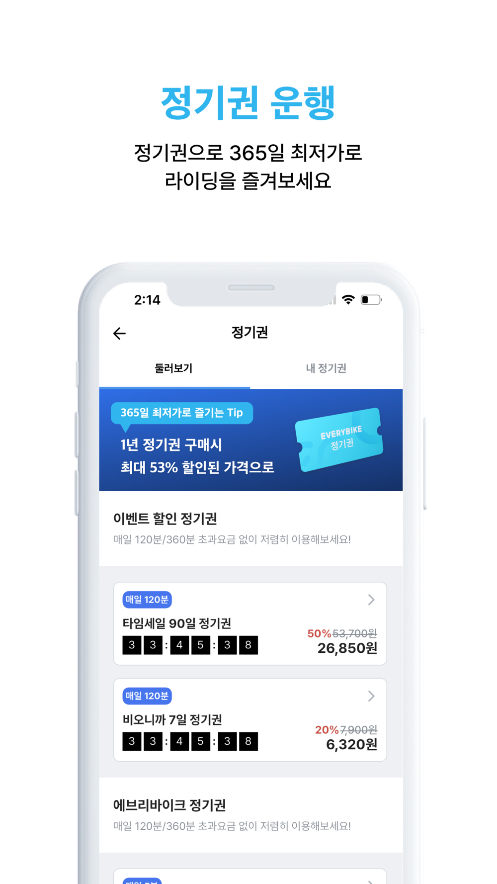 급히 이동할때나 여유있게 운동할때나 재밌는 시간이 필요할때 언제든 에브리바이크가 함께합니다.