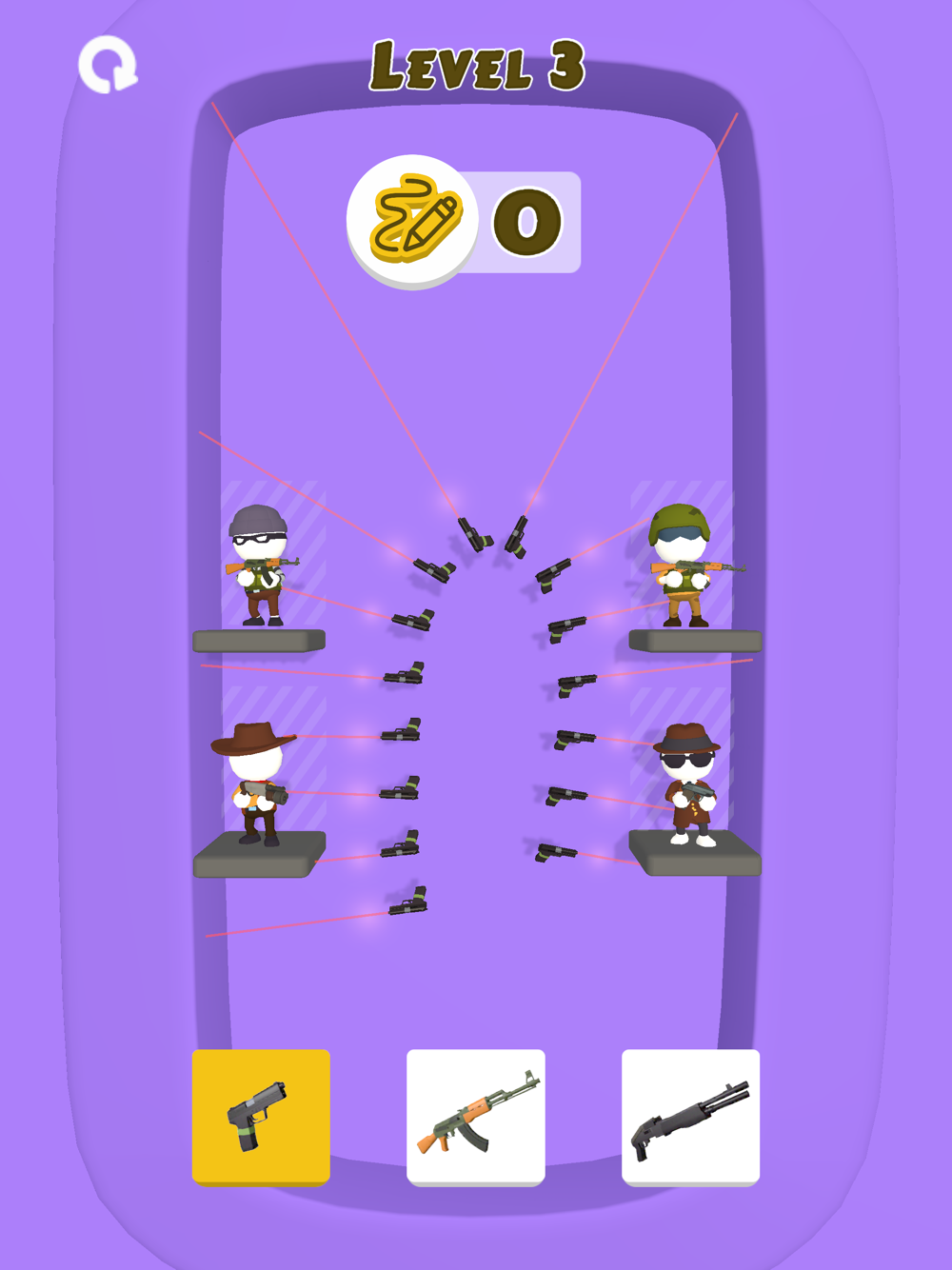 Draw a line of weapons to hit the enemy