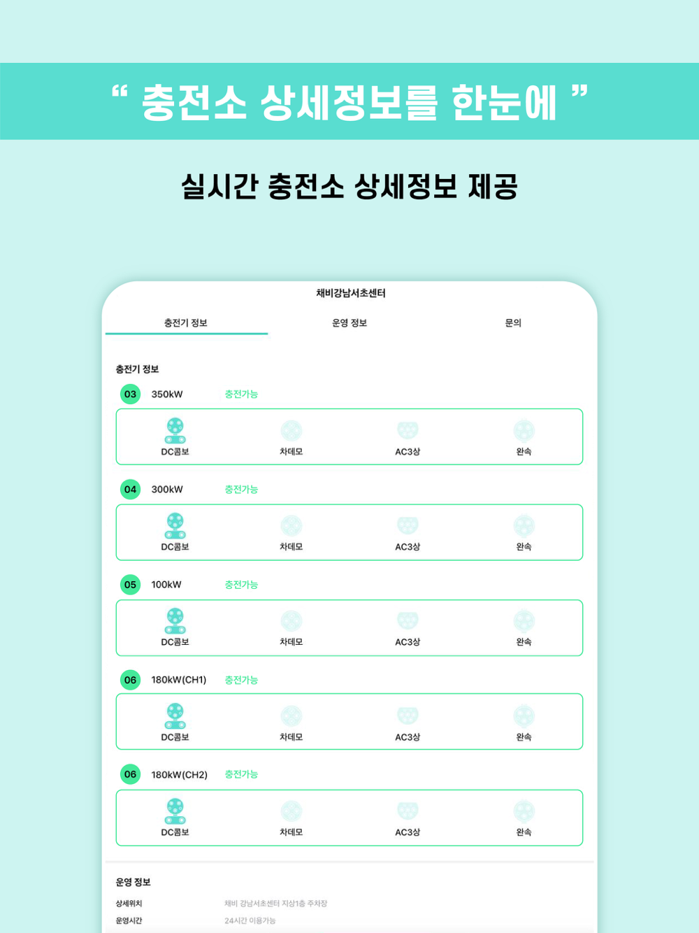 - 위치 : 내 위치와 가까운 충전소 정보 및 길 안내에 사용됩니다.