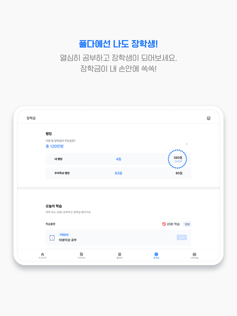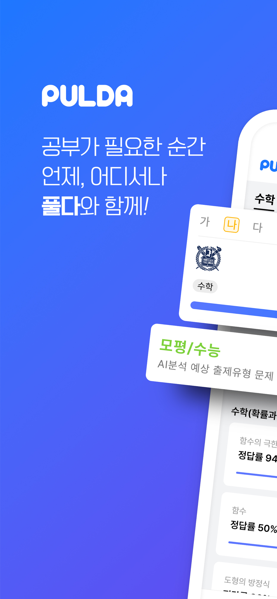풀다 유저들은 하루 30분, 한 달 학습 시 과목별 평균 12점 상승을 경험했습니다.
