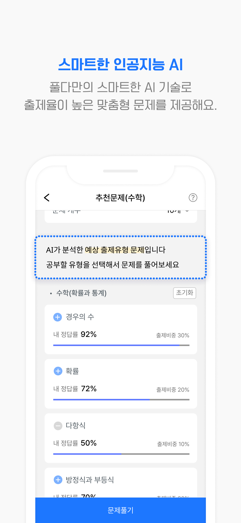 AI가 나에게 꼭 필요한 문제만 골라서 추천!