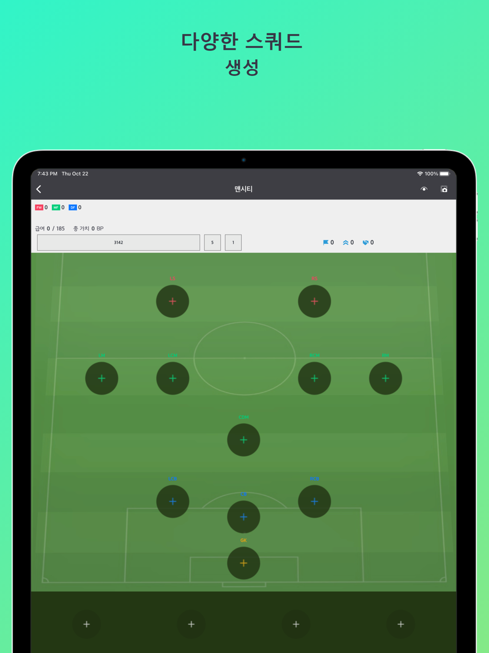 - 원하는 포메이션으로 나만의 스쿼드를 만들고 스쿼드 정보를 확인할 수 있습니다.