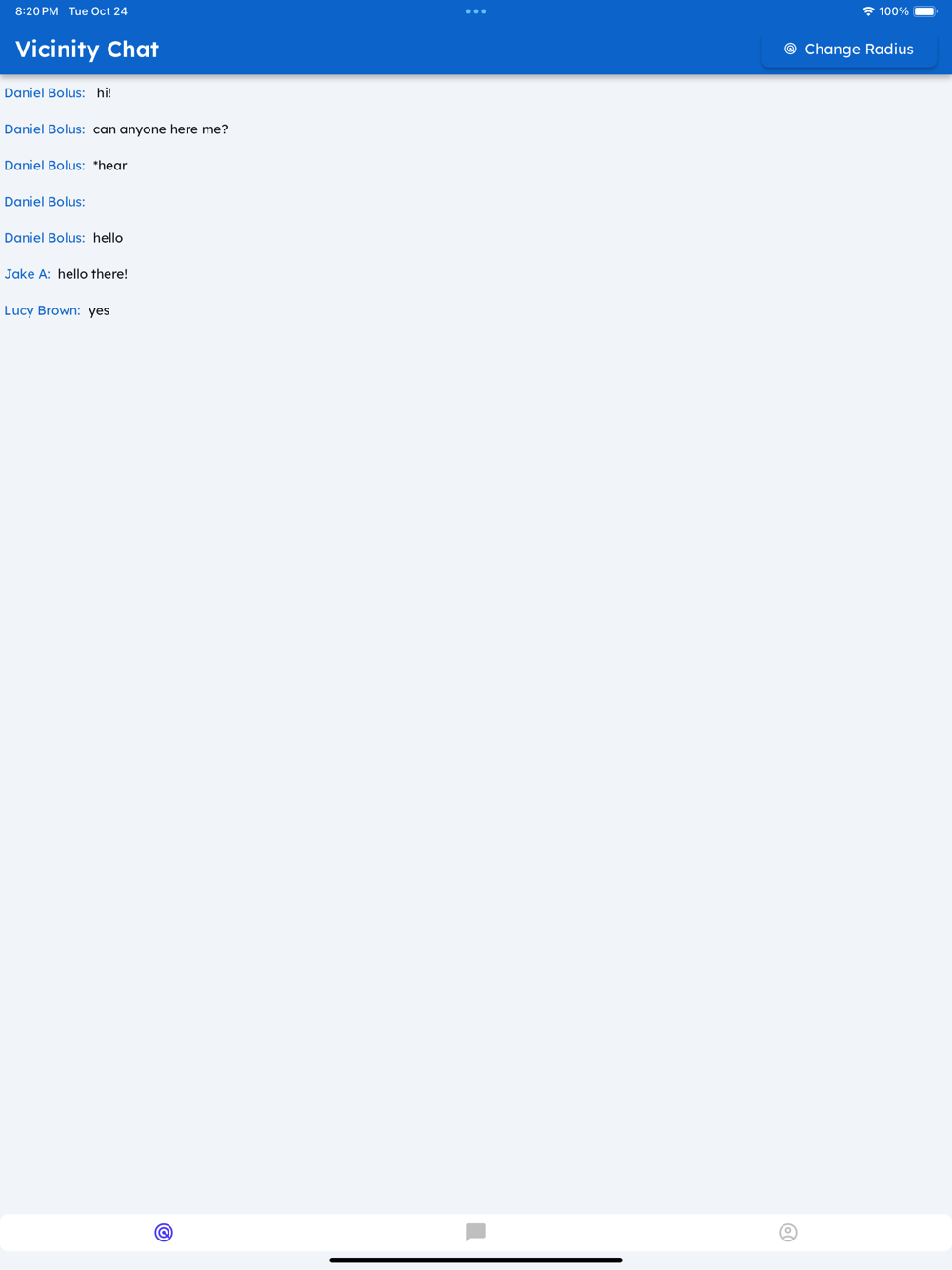 Vicinity is a social tool developed with a vision to bring people together in a time of increased social isolation. Its live chatroom and messaging features will give you the ability to connect with everyone around you—broadly interacting with smartphone users around you has never been easier. This app will allow entire cities and neighborhoods to chat with each other, all at once, in real time!