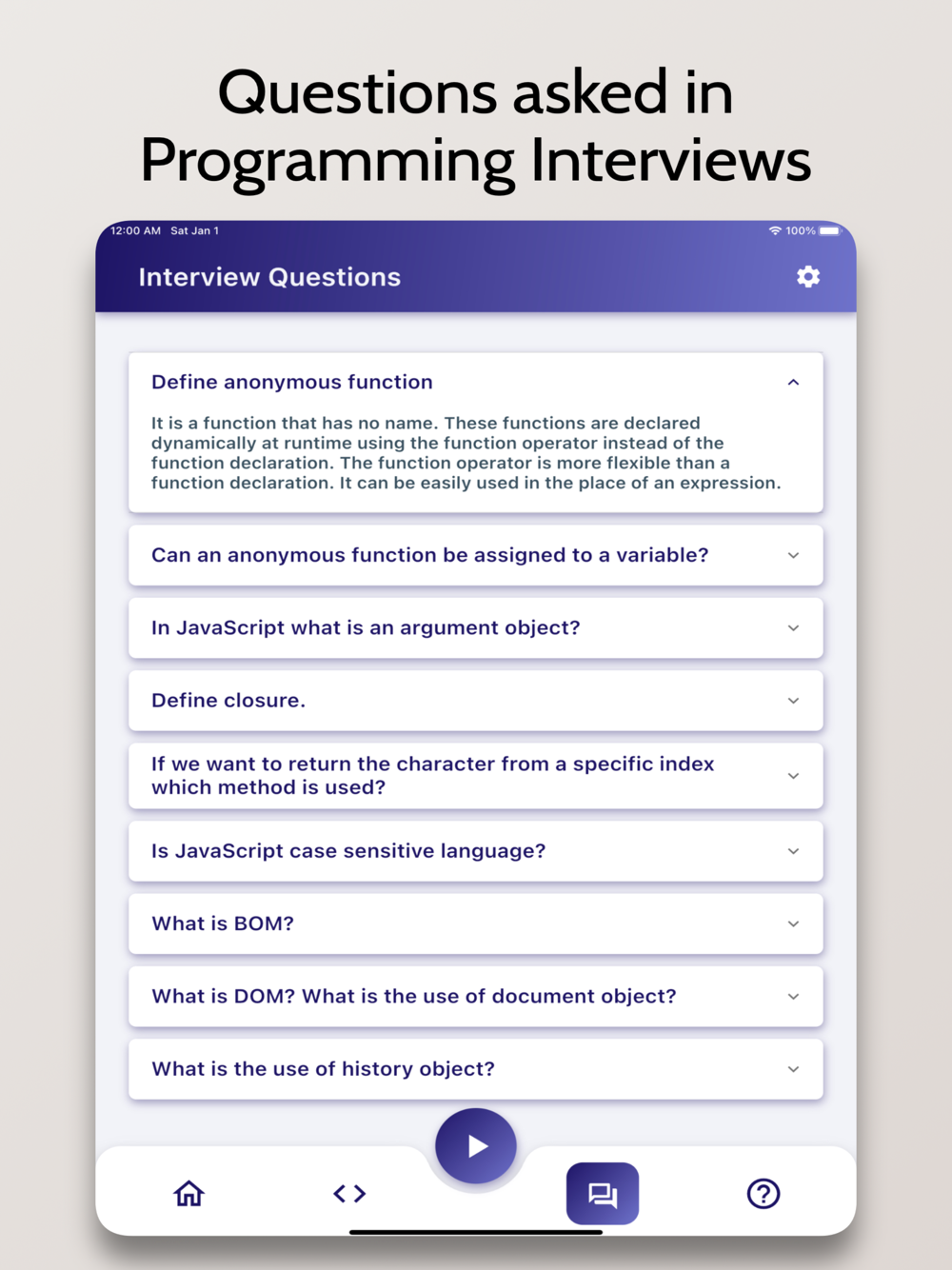 Whether you want to learn JavaScript Programming as a Hobby, for School/College, or want to build a Career in the field, this Tutorial is for you. The tutorial covers everything from the Basics of Programming to Advanced Concepts like Data Structures. It also comes with a sleek and interactive graphical user interface.