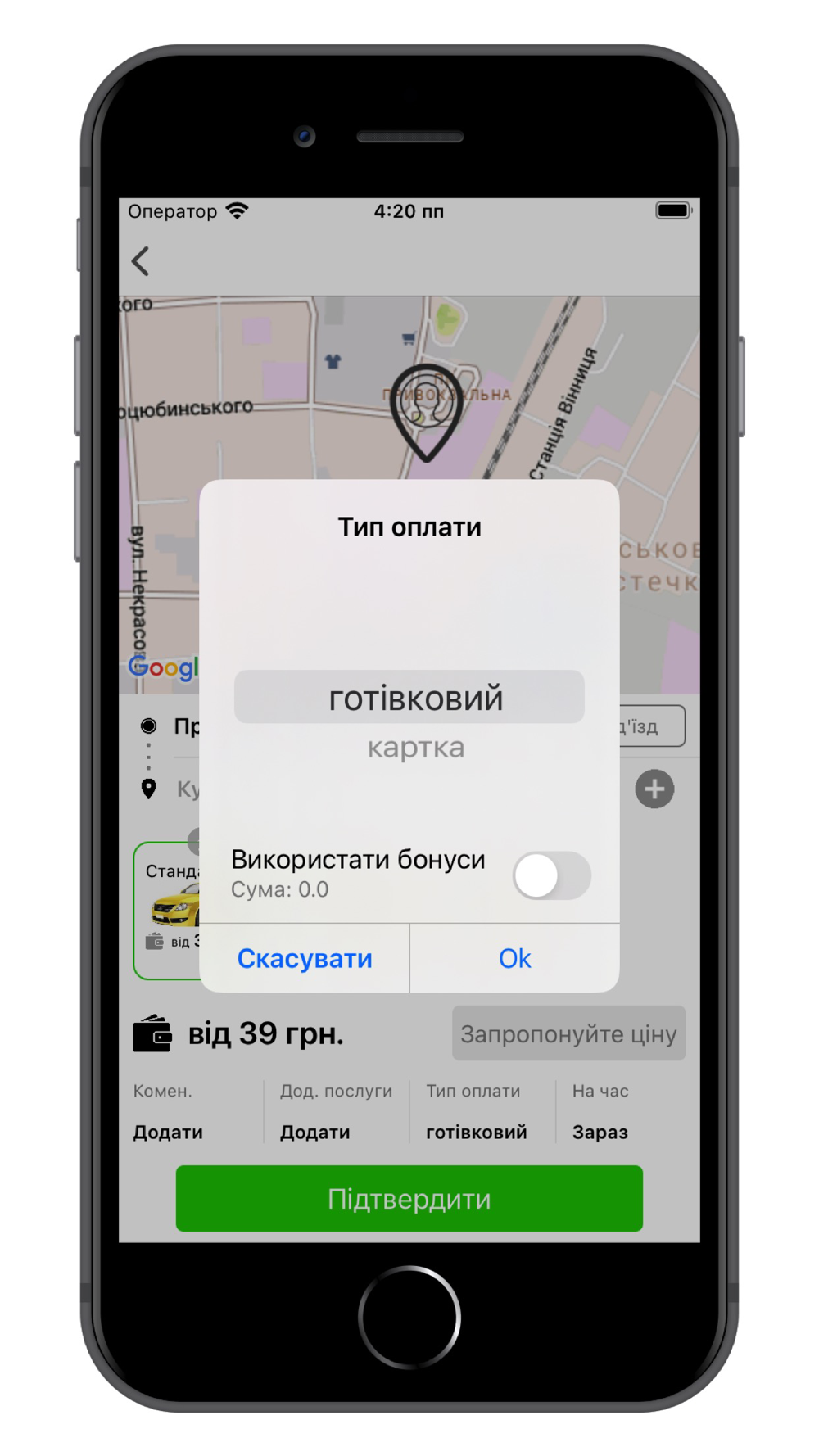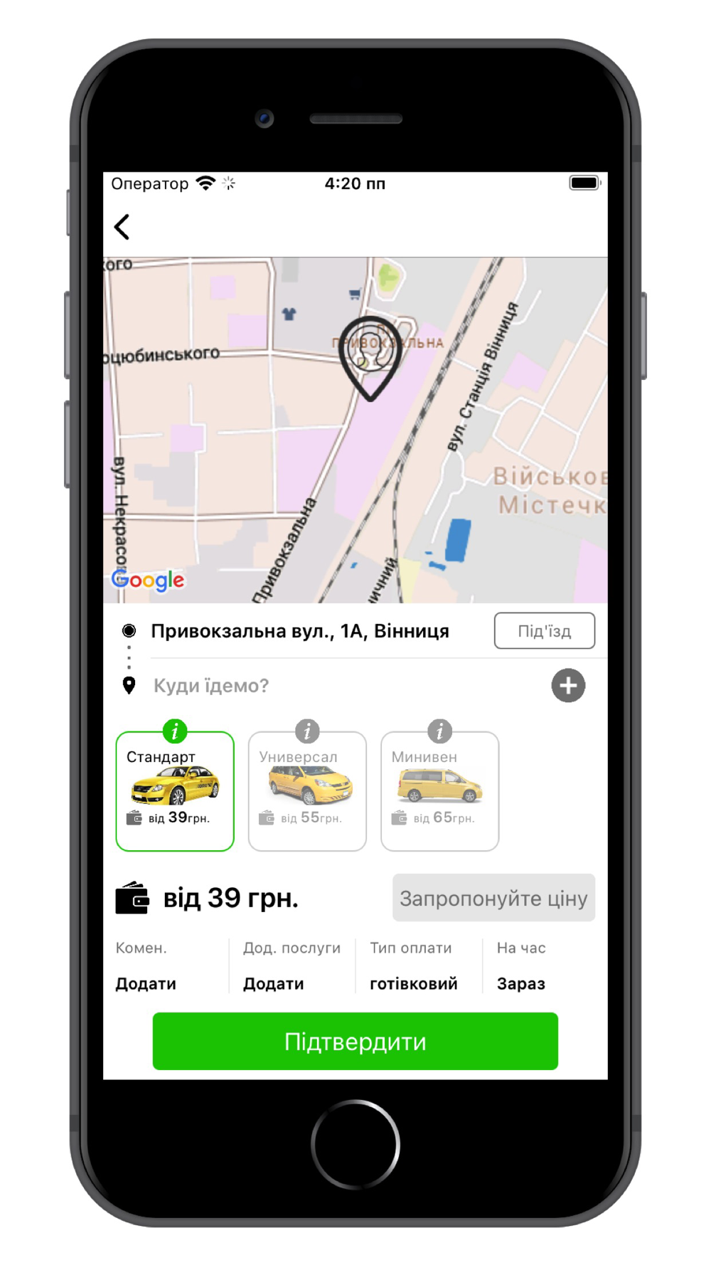 Слідкуй за прибуттям водія в реальному часі за допомогою карти.