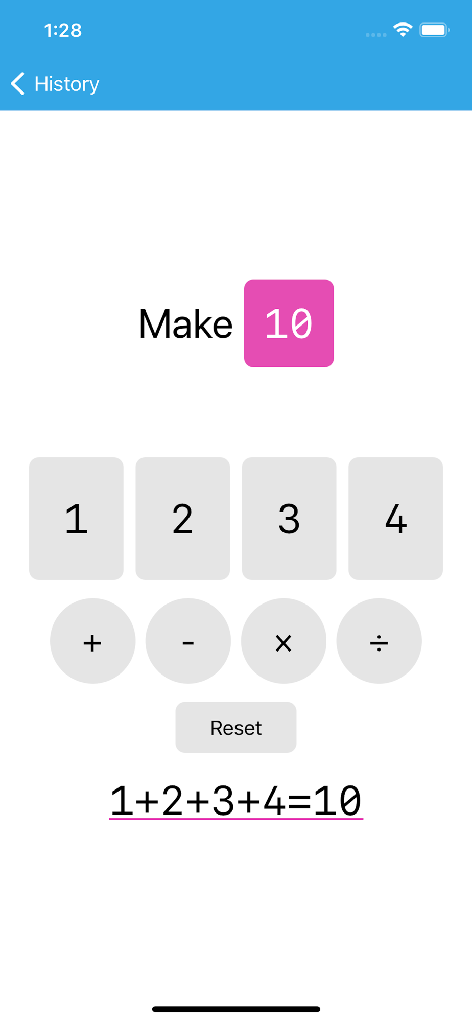 "Make 10" (10 puzzle) is an arithmetic game to make 10 using 4 numbers and +-×÷.