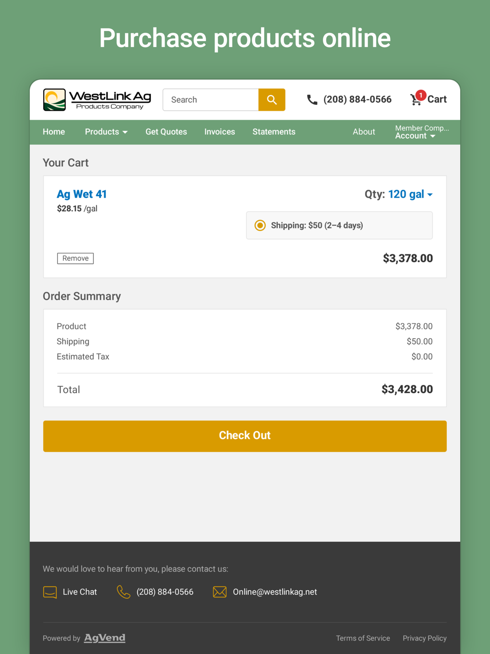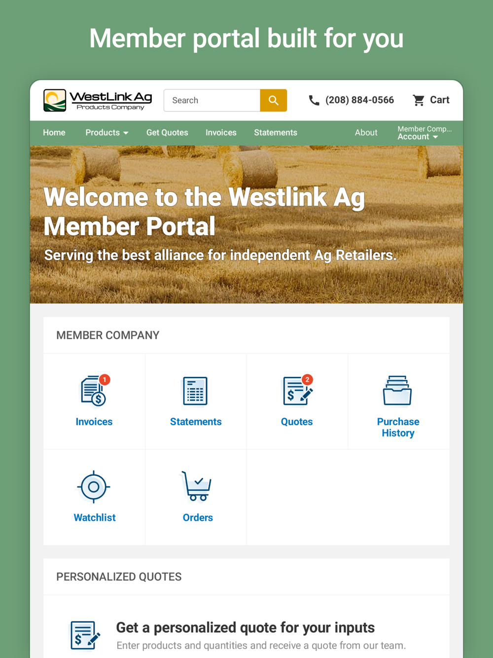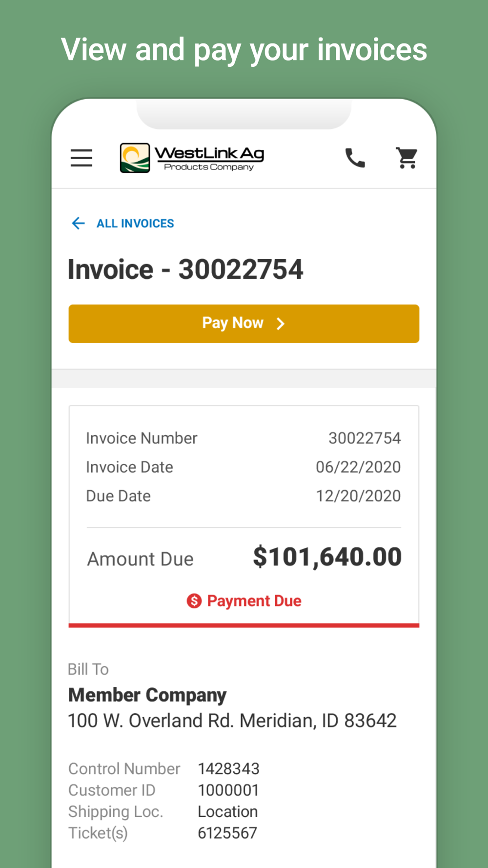 Easily look up all of your WestLink Ag Products Company account information. Find all of your previous purchases or view and pay your invoices in a few clicks.