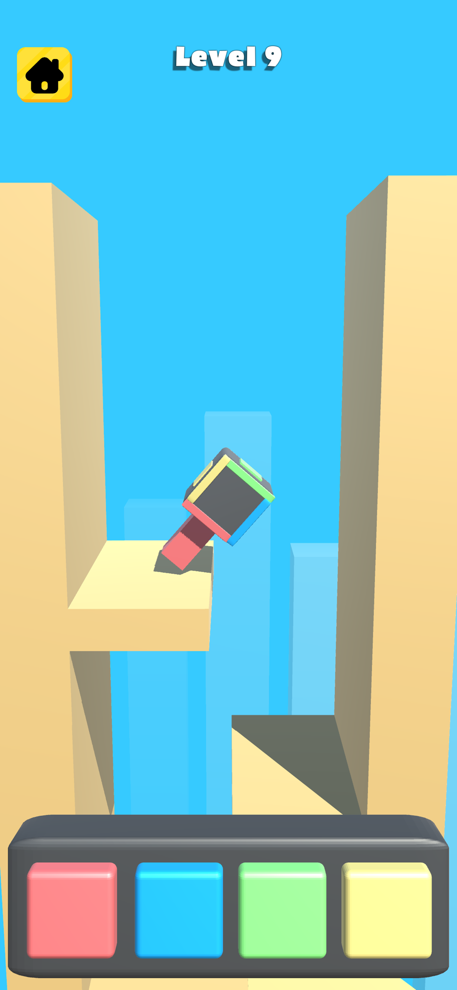 Use the buttons and activate the legs for jumping. Take the cube to the finish line.