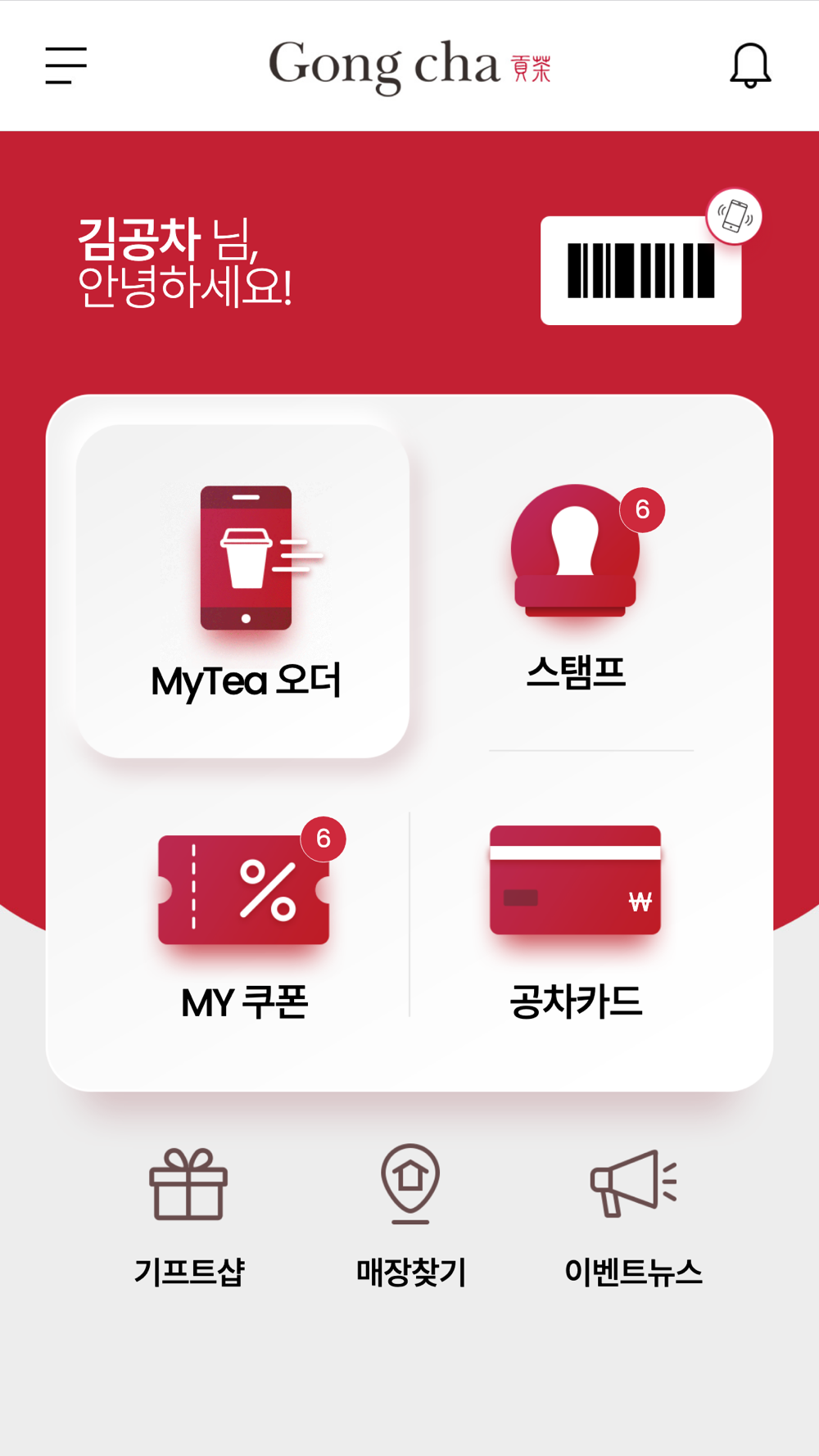 ‘공차 멤버십’은 (주)공차코리아 공식 애플리케이션입니다.
