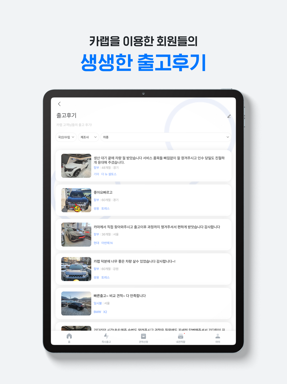 카랩의 까다로운 인증절차를 거쳐야만 카매니저로 활동할 수 있으며, 안심하고 거래하실 수 있습니다.
