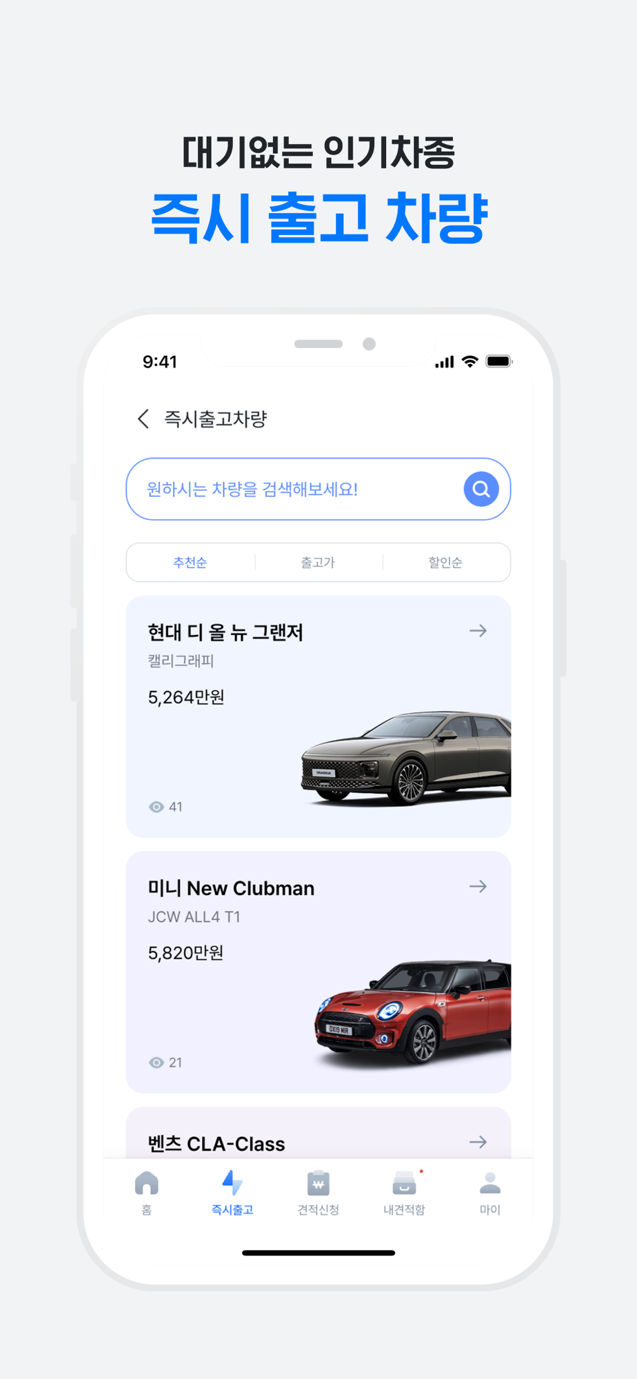 - 차량별 최대 할인혜택! 기다리지 않는 즉시출고차량! 카랩에서 바로 확인이 가능합니다.