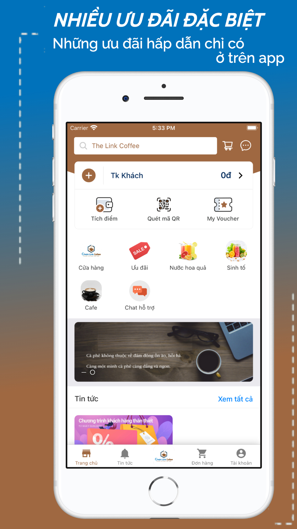 Chuỗi cafe liên kết. Với những hạt cà phê nguyên chất, đảm bảo được hương vị cà phê thơm ngon nhất. Hãy tải ứng dụng The Link coffee ngay để được thưởng thức những tách cà phê và nhận được những ưu đãi hấp dẫn chỉ có ở trong app.
