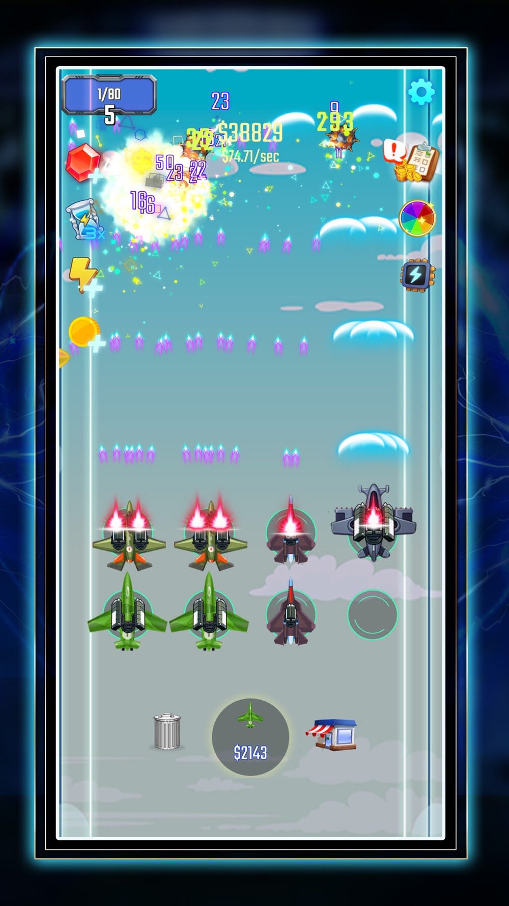 Get ready for real breathtaking action while playing awesome new clicker Jet Fighter Defender. Build and rule your own empire by buying, and managing your own squadron. Invest in the best jets and become a tycoon in this awesome new clicker! Click on the jet idle tycoon to merge them and get a new powerful merging fighter jet. Take control of every merging plane. Merge & Defeat the enemies to protect your aircraft! Need some real challenge? Unleash the might of your planes’ power on enemy jets and light up the skies with blazing explosions. Looking for a fun Game? A time killing game? An attractive Plane game? An idle tycoon game with a beautiful design? A free game? An offline game? You got it right! Merge kinds of jet fighters to get a higher-level jet. Fly far and far. Merge the same jets together into better-advanced ones.