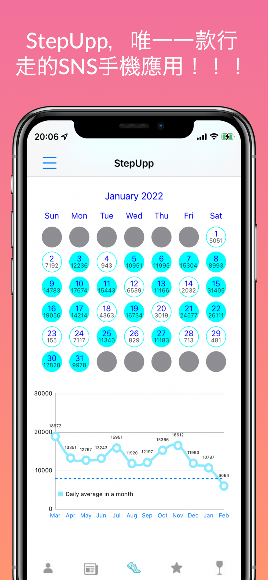 與 AppleHealth 同步,以精美的方式可視化您每天/每週/每月/每年的步驟。通過 SNS 社區、每日步數排名以及新聞和健康提示饋送功能,激勵您的步行、慢跑和跑步。