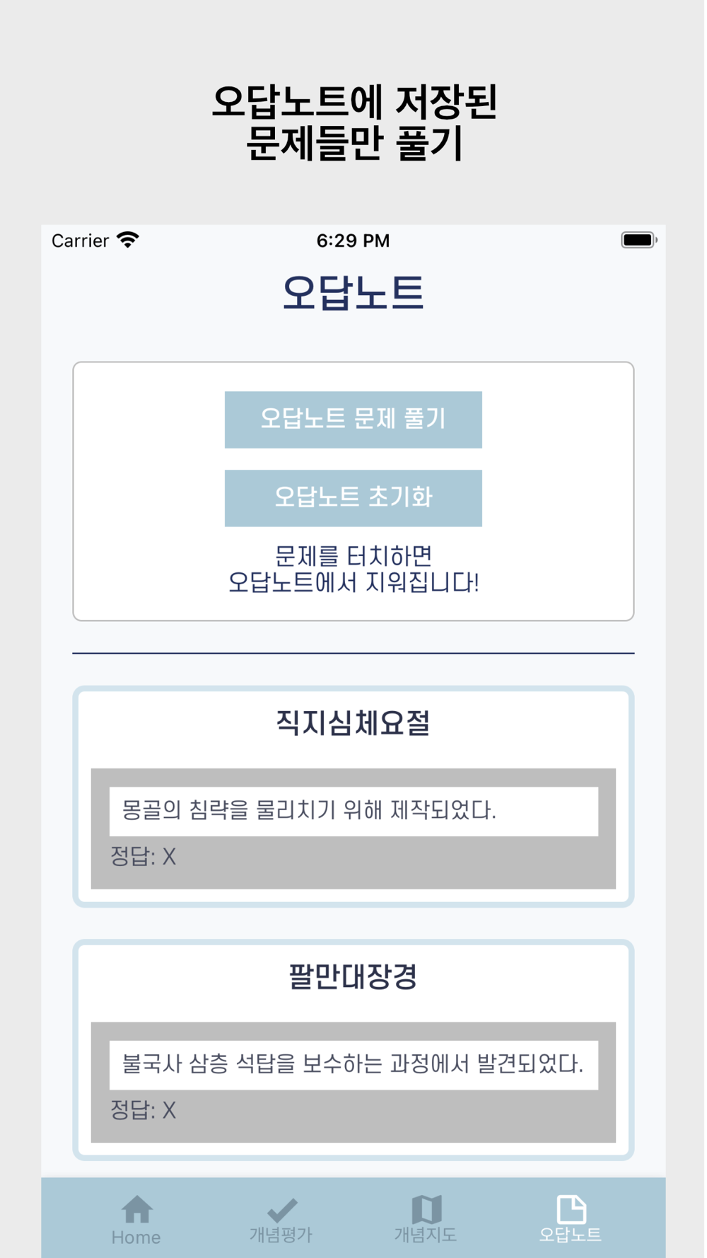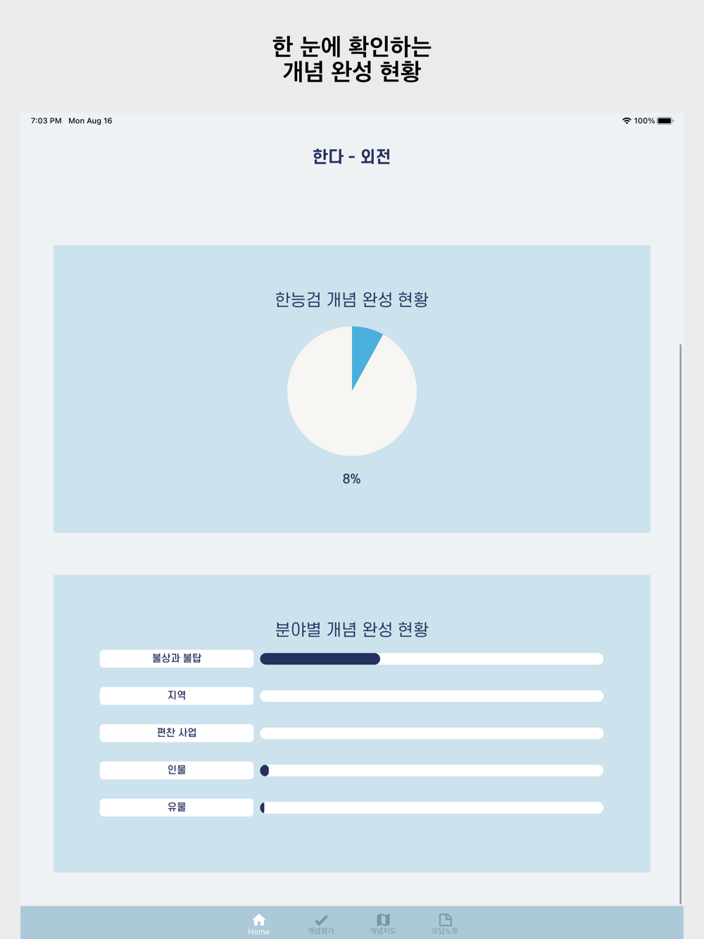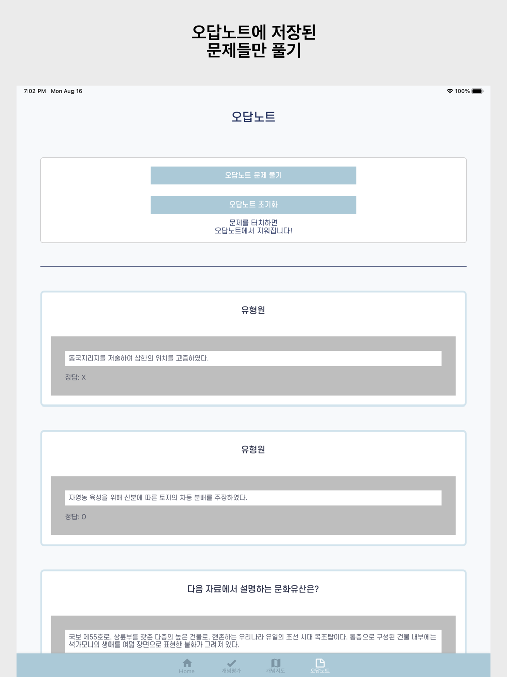 분야별 개념 문제들을 연습해서 더 완벽한 한국사 개념을 완성해보세요!