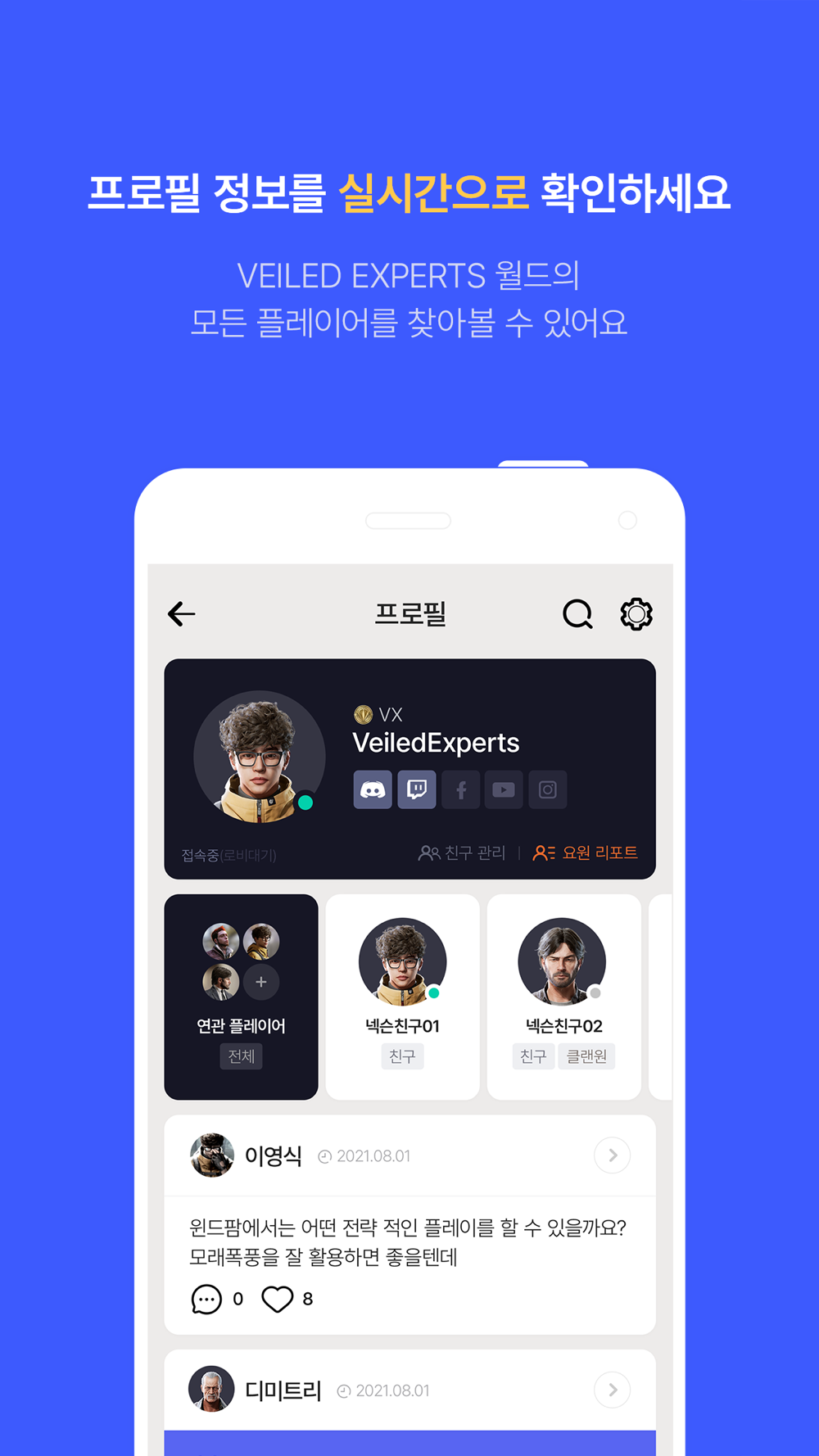 「Veiled Experts Companion」은 SNS를 접목한 플레이어 전용 담벼락을 지원합니다