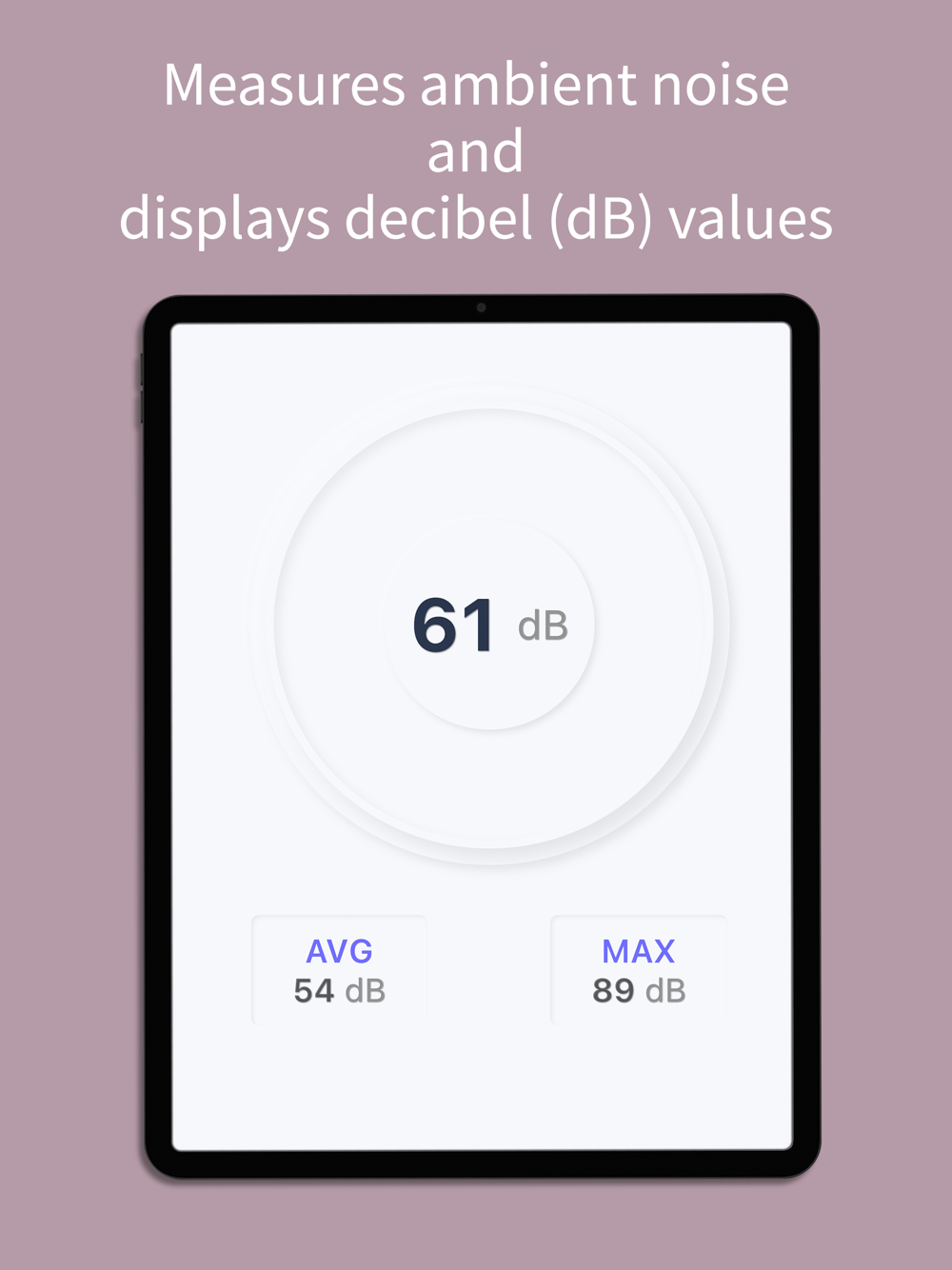 The Noise Meter app measures ambient noise and indicates a decibel (dB) value.