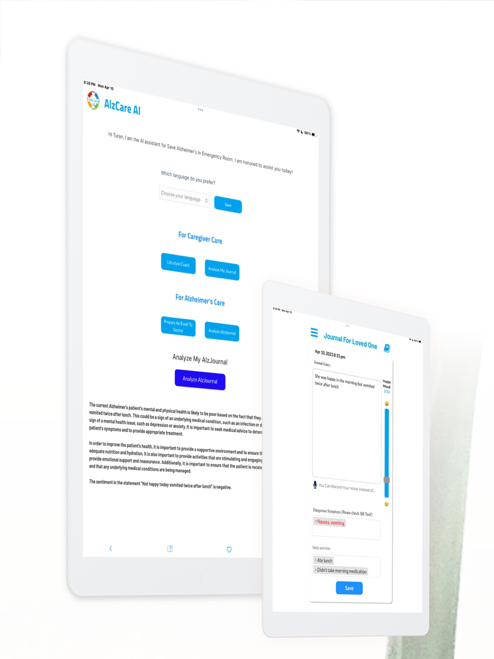 Our app revolutionizes Alzheimer's care by harnessing the power of artificial intelligence to provide innovative support for patients and caregivers alike.