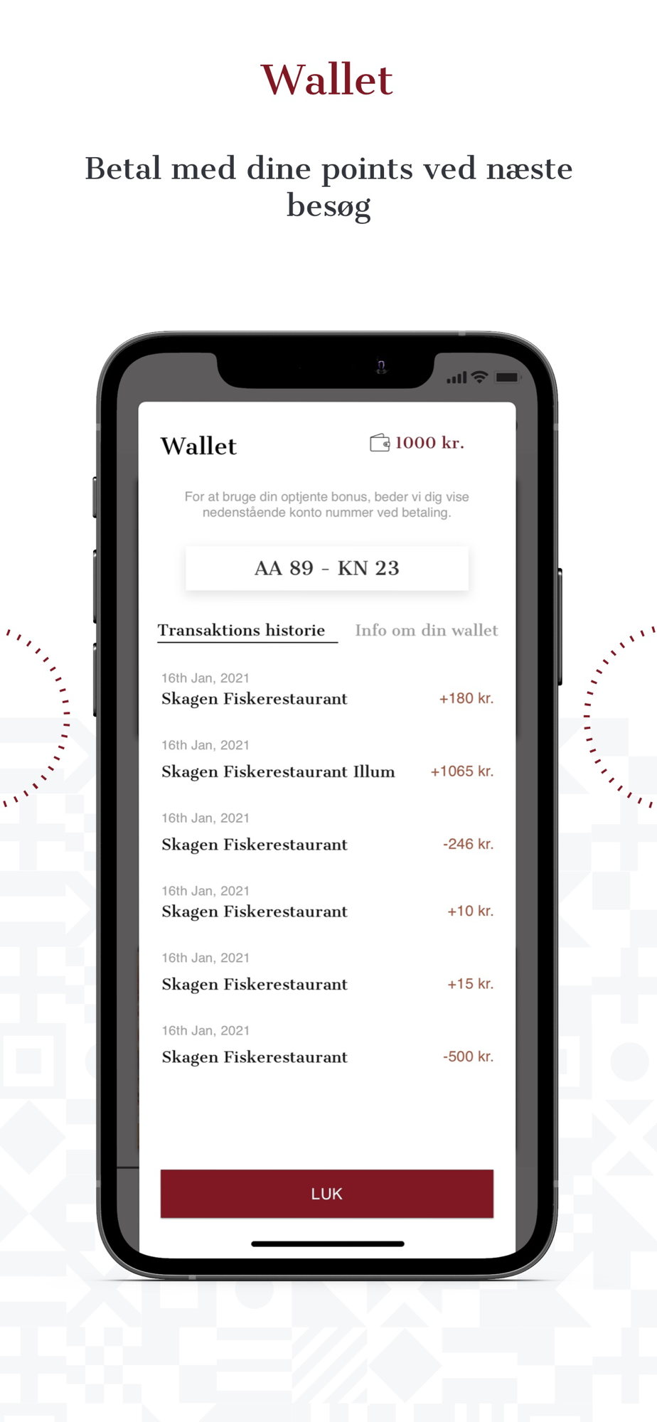 - Hver gang du køber mad, drikkevarer eller oplevelser på Skagen Fiskerestaurant, optjener du point som bliver registreret i appen. Jo mere du køber jo højere vil du blive placeret i vores loyalitetsgrupper - bronze, sølv eller guld.