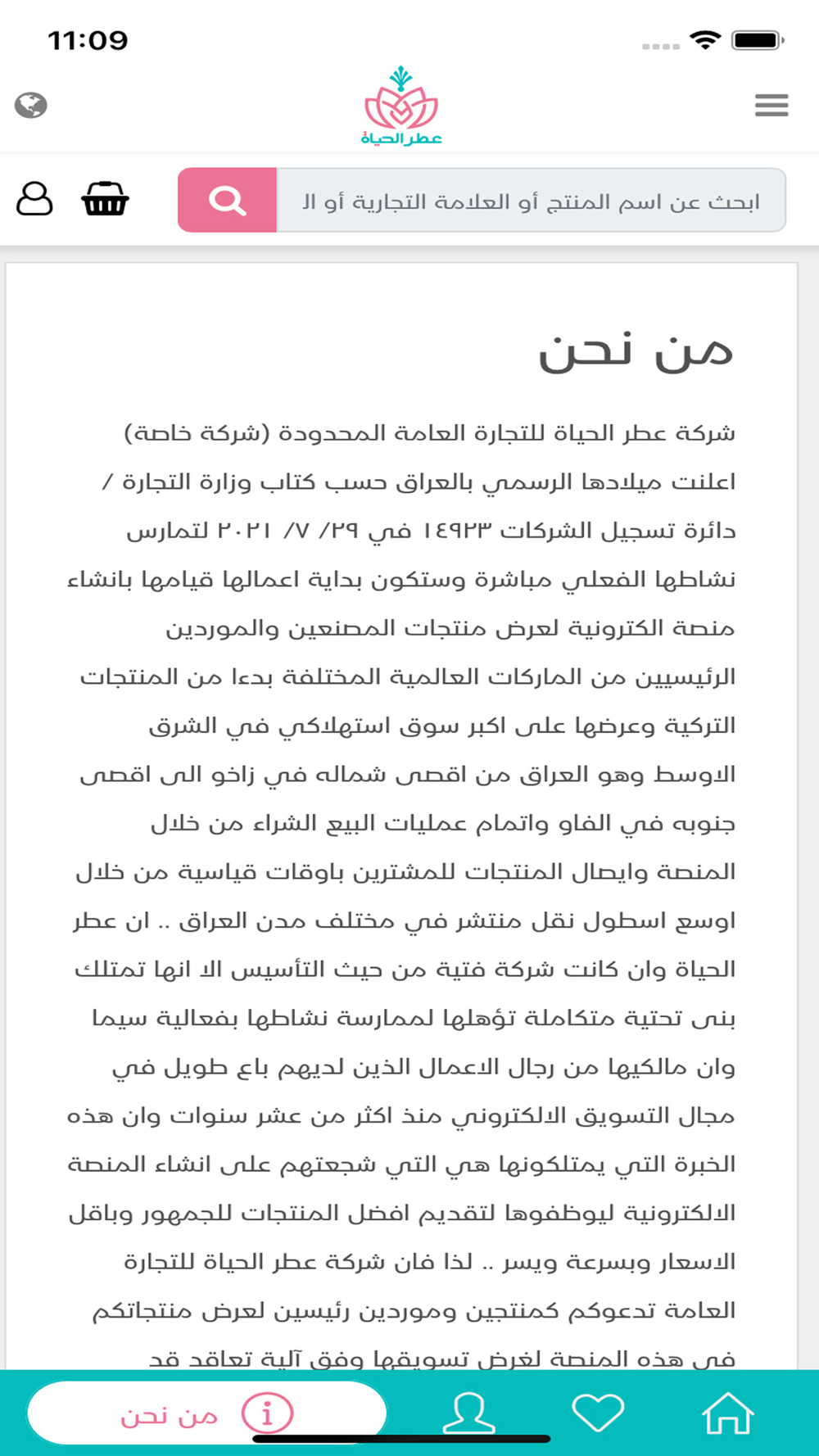 شركة عطر الحياة للتجارة العامة المحدودة (شركة خاصة) اعلنت ميلادها الرسمي بالعراق حسب كتاب وزارة التجارة /دائرة تسجيل الشركات ١٤٩٢٣ في ٢٩/ ٧/ ٢٠٢١ لتمارس نشاطها الفعلي مباشرة وستكون بداية اعمالها قيامها بانشاء منصة الكترونية لعرض منتجات المصنعين والموردين الرئيسيين من الماركات العالمية المختلفة بدءا من المنتجات التركية وعرضها على اكبر سوق استهلاكي في الشرق الاوسط وهو العراق من اقصى شماله في زاخو الى اقصى جنوبه في الفاو واتمام عمليات البيع الشراء من خلال المنصة وايصال المنتجات للمشترين باوقات قياسية من خلال اوسع اسطول نقل منتشر في مختلف مدن العراق .. ان عطر الحياة وان كانت شركة فتية من حيث التأسيس الا انها تمتلك بنى تحتية متكاملة تؤهلها لممارسة نشاطها بفعالية سيما وان مالكيها من رجال الاعمال الذين لديهم باع طويل في مجال التسويق الالكتروني منذ اكثر من عشر سنوات وان هذه الخبرة التي يمتلكونها هي التي شجعتهم على انشاء المنصة الالكترونية ليوظفوها لتقديم افضل المنتجات للجمهور وباقل الاسعار وبسرعة ويسر .. لذا فان شركة عطر الحياة للتجارة العامة تدعوكم كمنتجين وموردين رئيسين لعرض منتجاتكم في هذه المنصة لغرض تسويقها وفق آلية تعاقد قد اعتمدتها المنصة سيتم ايصالها لكم عند ابداء رغبتكم بذلك تقبلوا اجمل تحيات الشركة وعامليها للذين سيكونوا في اهبة الاستعداد للتعاون معكم والاجابة على استفساراتكم وتهيئة المتطلبات الكفيلة لاجراء التعاقد معكم مع التقدير ادارة عطر الحياة للتجارة العامة.