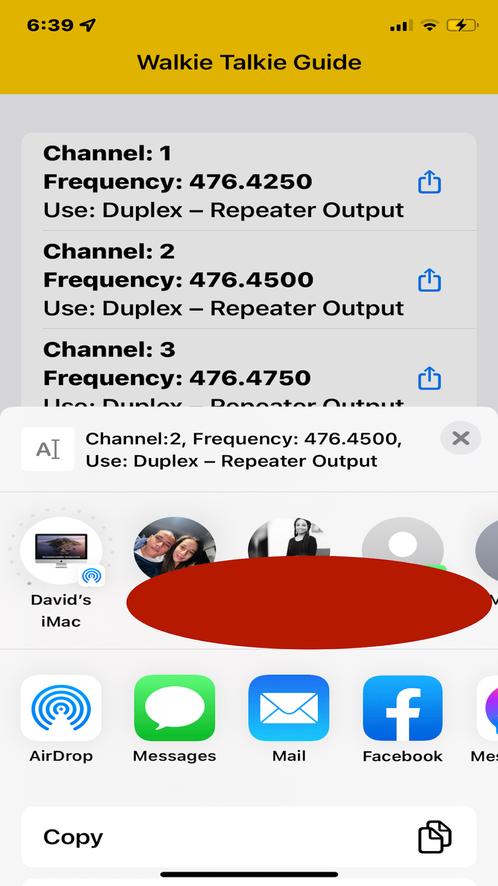 You can always share the channel details, along with its frequency and usage details using a share sheet to any group or social media.
